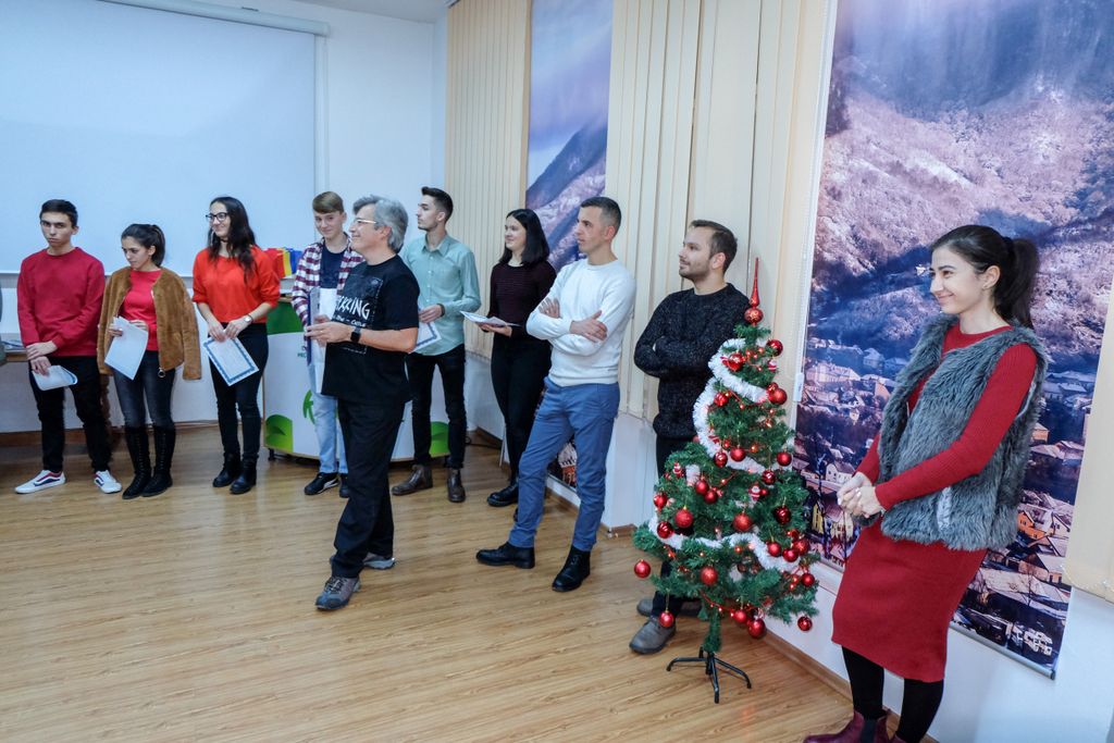 Cei nouă elevi, absolvenți ai cursului de Introducere în Fotografia Digitală, au primit diplome de la Paul Pasztor, susținătorul cursului, în semn de apreciere pentru activitatea și interesul acestora în ceea ce privește fotografia digitală.
