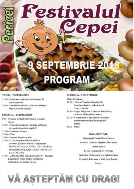 Festivalul Cepei, aflat la a X-a ediție, ce se va desfășura la Pericei în perioada 7 – 9 septembrie 2018, vine cu programe cultural-artistice, concurs de gastronomie, concerte, jocuri de artificii dar și cu un moment dedicat comemorării și depuneri de coroane la monumentele eroilor din localitate.