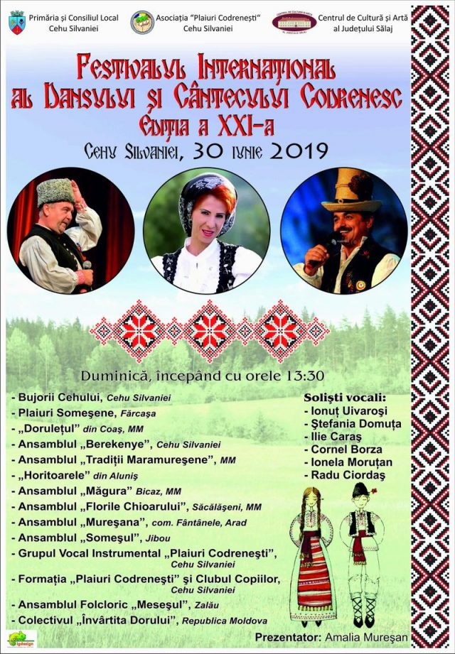 Ediția a XXI-a a Festivalului Internațional al Dansului și Cântecului Codrenesc va avea loc duminică, 30 iunie 2019, începând cu ora 13:30, la Cehu Silvaniei, eveniment organizat de Primăria și Consiliul Local Cehu Silvaniei, Asociația „Plaiuri Codrenești” Cehu Silvaniei și Centrul de Cultură și Artă al Județului Sălaj.