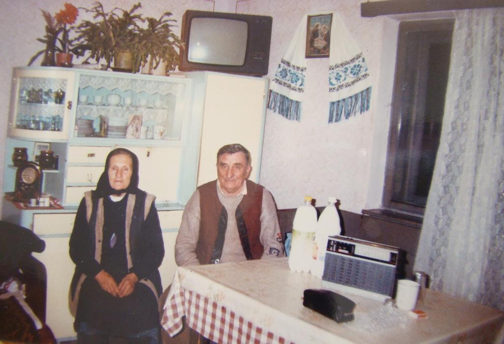 G.F.: Maica și tata ne-o învățat rugăciunile. Mergeam la biserică, nu era duminică să nu ne ducem. Tata era sfăt la biserica cea veche. Biserica era în fața ăsteia noi, lângă Mihaiu Luchii. Merem și trăgeam clopotele, tăți din familie știam trage