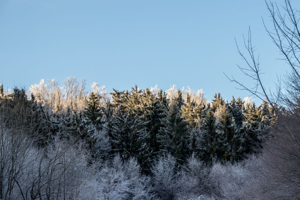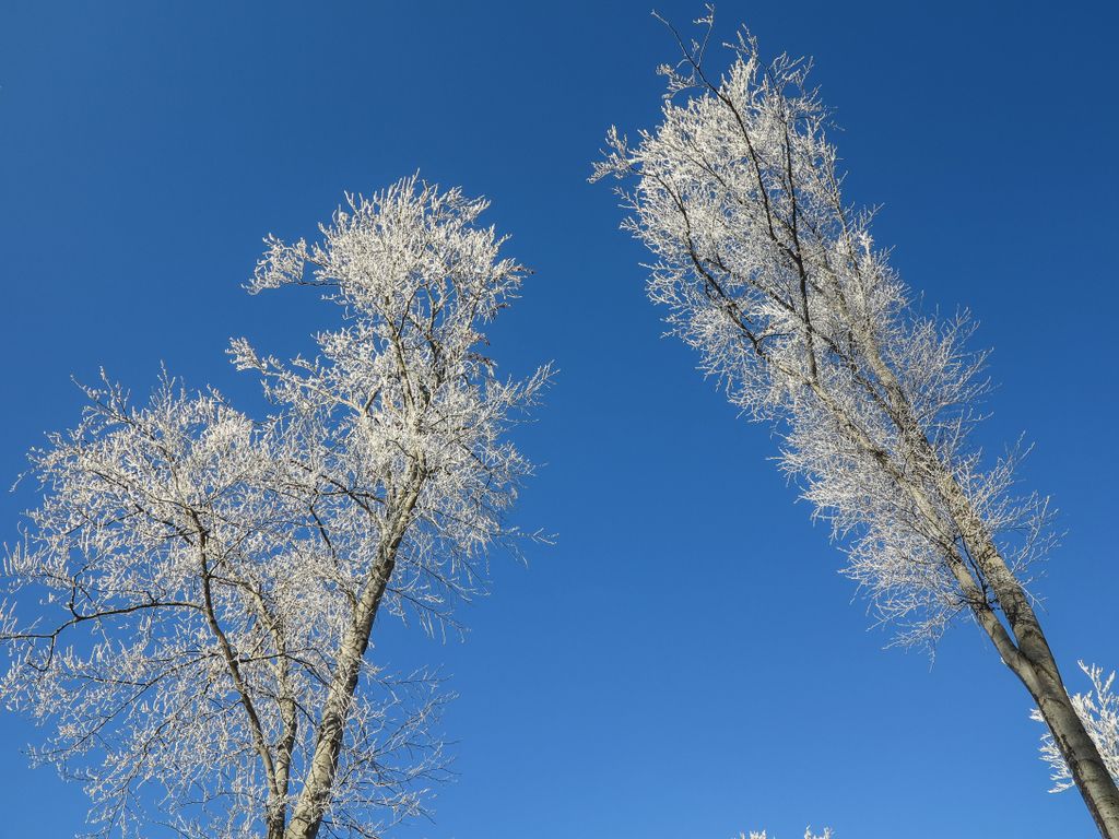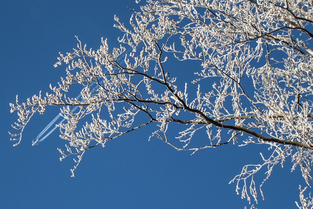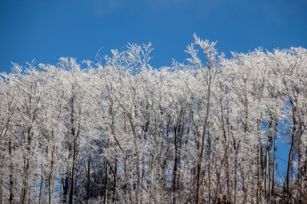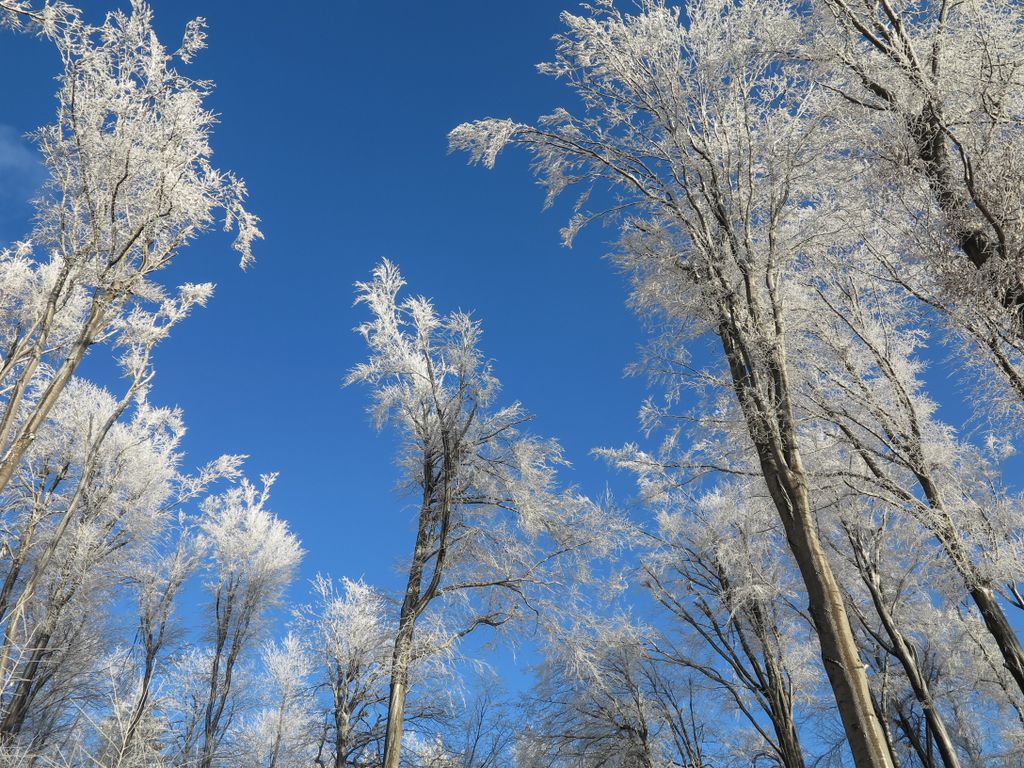 Am ieșit din hățișul pădurii tinere, iar cerul a completat tabloul superb al naturii cu florile de zăpadă care decorau albastrul de deasupra. Flori de zăpadă… așa păreau copacii conturați cu albul înghețat al crengilor, care, în drumul lor către sus, au creat un fel de dans din împletirea albă, artistică a pădurii cu cerul de un albastru intens. Și efectul e cu atât mai puternic cu cât albul acela înghețat nu a acoperit de tot crengile copacilor, ci doar le-a evidențiat și mai tare, iar desenele acelea pe care copacii le-au făcut în albastrul cerului au creat un tablou splendid. De fapt nu un tablou, ci mai multe, toate la vedere în expoziția comună a cerului cu natura, o expoziție care s-a tradus ușor, în câteva cuvinte: ”Cât de frumos, cât de frumos… ”