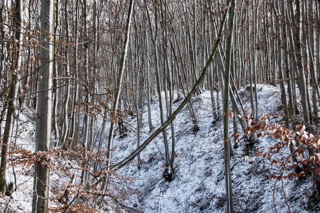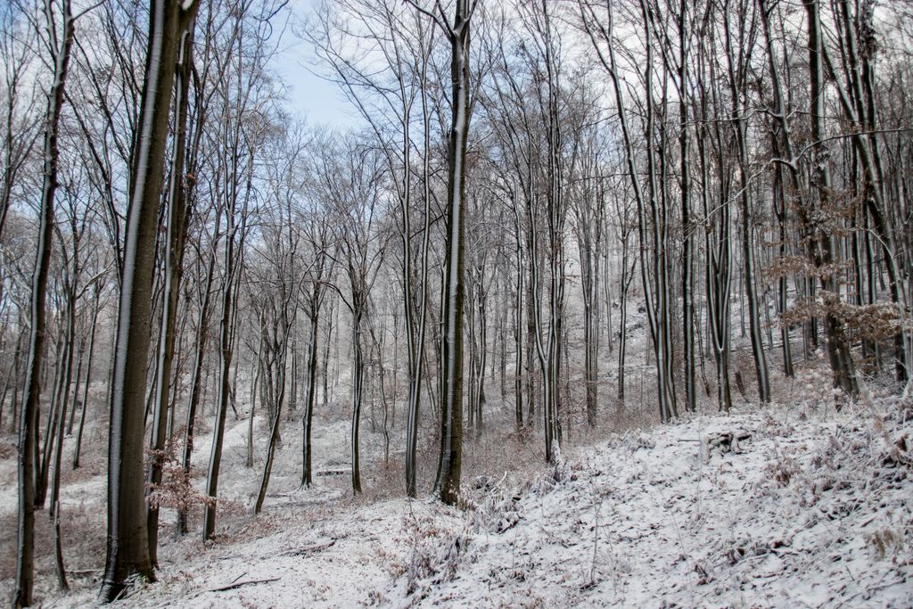 Albastrul ăsta de cer, pe care se conturează gravura în alb a copacilor din pădurea Meseșului, e un spectacol care te face să deschizi ochii mari, lăsându-ți capul pe spate, pentru a putea cuprinde cu privirea cât mai mult din tabloul de deasupra. Un tablou care, din când în când, când dă frigul, dar zăpada încă nu a acoperit pădurea cu totul, e superb, un amestec de albastru de cer și alb, un alb creionat, oarecum, pe cerul de deasupra în așa fel încât zici că cineva tocmai și-a desăvârșit opera de artă și vrea să o prezinte lumii. Și, de fapt, așa și e. Iar acel cineva e natura.