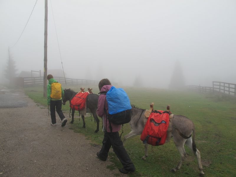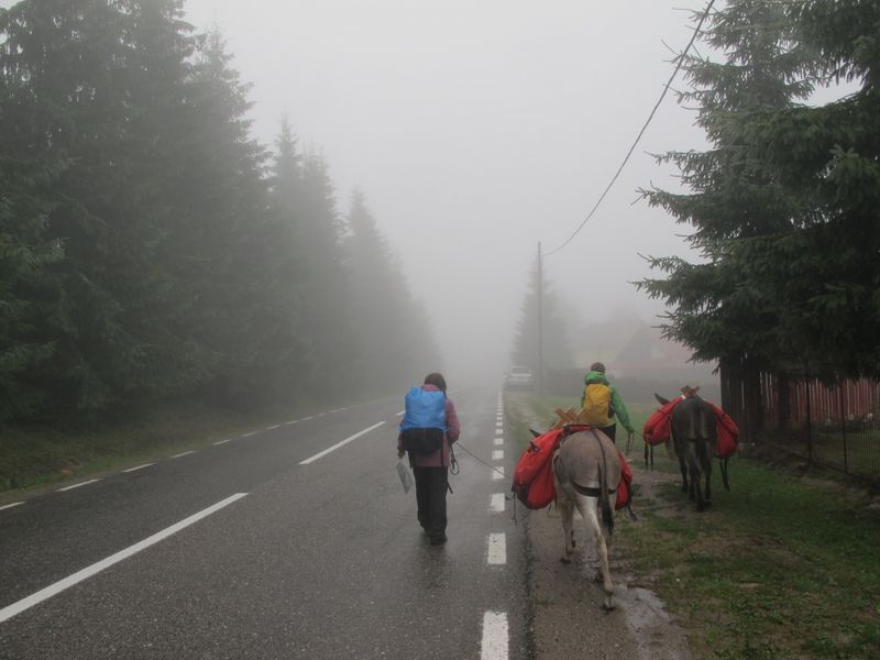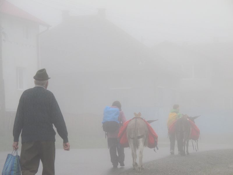 Şi până la urmă, nu vremea şi cei câţiva zeci de kilometri zilnici s-au dovedit a fi cei mai greu de suportat, ci faptul că avându-le cu ele pe Sara şi Mura, făceau 18 kilometri în circa 10 ore, ceea ce înseamnă o medie de mai puţin de 2 kilometri la oră, pe când un om neantrenat parcurge, la pas normal, circa 4 kilometri pe oră, iar dacă merge într-un ritm cât de cât alert face și 6 kilometri într-o oră. Bine, că atunci când vremea e frumoasă, e o adevărată plăcere să mergi pe munte în pas de plimbare, să te umpli cu aerul tare de brad, să bei apă vie de izvor, să te întreci cu albinele şi fluturii, să urmăreşti joaca de-a poveştile a norilor, să încerci să înţelegi dacă stăpânul măgăruşilor surori, Sara şi Mura, a fost atât de şugubăţ, încât să le dea numele după saramură, sau dacă totul a fost doar pură întâmplare. Dar mai ales să încerci să dezlegi misterul opririlor atât de dese a asinilor, să traduci mişcarea urechilor şi datul din cap nărăvaş, atunci când nu e nimic prin preajmă, de parcă ai putea traduce încăpăţânarea. Însă când toate astea sunt ascunse în ceaţă, când abia vezi coada măgăruşului şi nu ştii ce e la doi metri în faţa ta, când ploaia te pătrunde indiferent ce haine şi bocanci termoizolanţi ai avea, când Sara şi Mura au încremenit şi nu vor să pornească de atâta vreme, încât îţi vine ţie să-i iei în spate sau pur şi simplu să-i laşi în voia sorţii, stai să te gândeşti, dacă nu ar fi mai bine să laşi totul baltă pentru o cameră uscată şi un ceai cald. Şi totuşi, când după mai bine de zece ore pe drum, ud până la piele la fel ca cei doi măgăruşi, reuşeşti să ajungi la gazda din acea zi, eşti fericit că nu ai abandonat, simţind cumva că ţi-ai autodepăşit limitele şi că poţi mai mult decât ai crezut, indiferent că ai 12 sau peste 40 de ani, şi primul gând care îţi vine e tot la cei doi companioni de drum, la măgăruşii care au înţepenit uzi de ploaie sub un brad. Oare Sara şi Mura sunt ok? Şi te trezeşti sărind de la masă, de lângă mâncarea caldă, fugind în ploaie şi strigând Saraaa, Muraaa… saramura?!