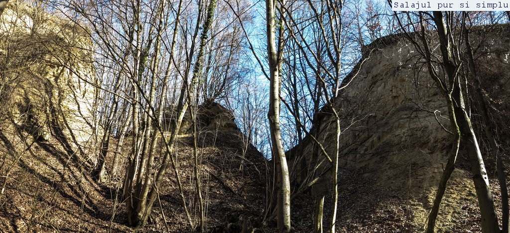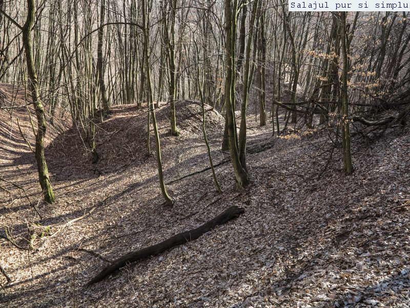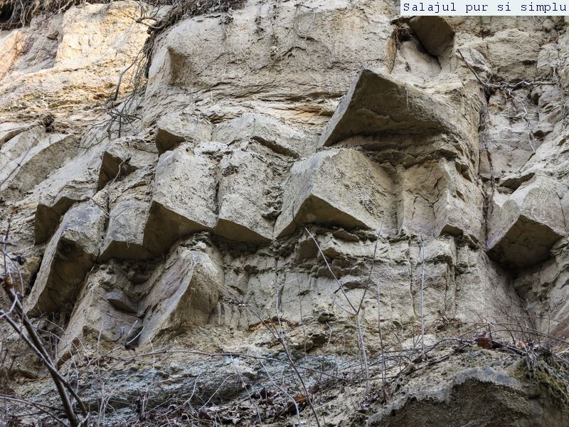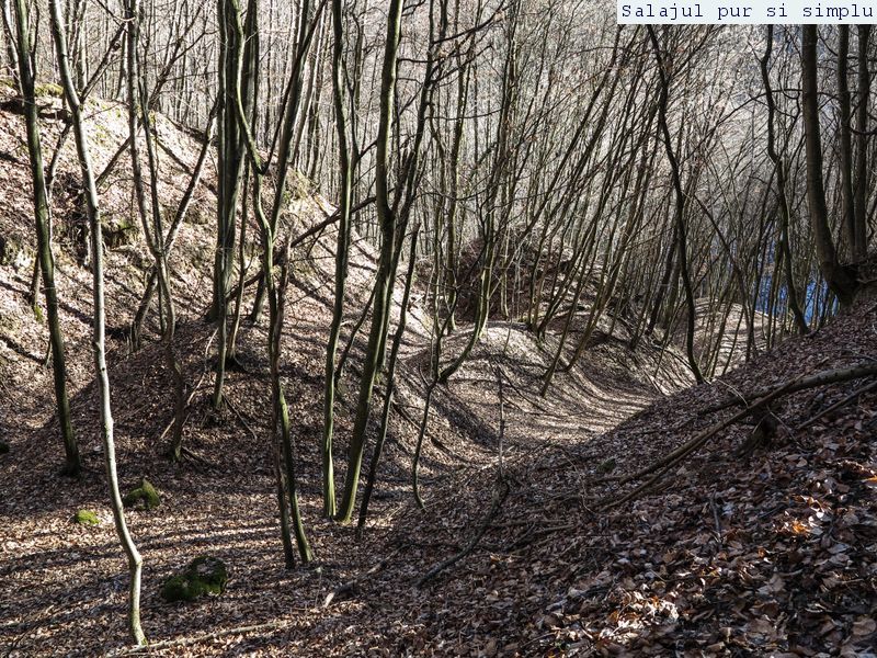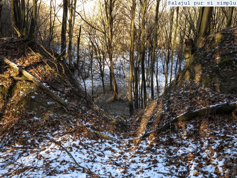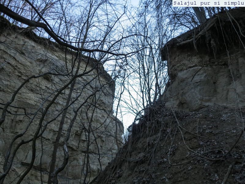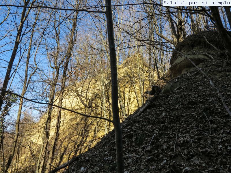 Cred că m-am învârtit de câteva ori, când spre stânga, când spre dreapta, privind la trecătoarea de dedesubt, la pereții galbeni care stăteau de veghe la marginea trecătoarei, tot minunându-mă de ceea ce mi se înfățișa privirii și simțurilor. Oare cât de lungă e trecătoare? Am coborât, e drept, cu regret, de pe turnul-altar, apoi, cu peretele drept al trecătorii făcându-mă să mă simt mic de tot, am mers de-a lungul celor câteva zeci de metri ai trecătoarei, pe lângă formele geometrice aproape perfecte desenate pe gresiile vechi ale pereților, împiedicându-mă, din când în când, privind cu gura căscată la opera naturii pe care am avut privilegiul să o descopăr, urcând pe cazematele de pământ din mijlocul trecătorii, ori mergând cu spatele, pentru a mai trage puțin cu ochiul la minunea naturii din pădure.