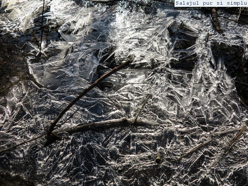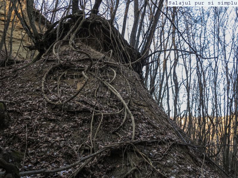 M-am oprit puțin lângă valea înghețată de lângă drum, să admir operele de artă ale gheții, care ascundea în desenele înghețate razele soarelui de deasupra, și totul părea ca un joc de lumini, apoi, pentru că deja simțeam pădurea aproape, am traversat noroiul arăturilor și am intrat în pădure. “Ce de urme, oare de ce or fi: de lupi ori de câini?”, m-am trezit întrebându-mă cu voce tare, și, sincer, aș fi preferat lupii, câinii domesticiți seamănă prea mult cu oamenii, iar acum n-am chef de oameni, acum vreau pădure și vânt și povești cu vrăjitoare. Și uriași de piatră. Și pentru că mi-am dorit, am primit. Cum am intrat în pădure, lumea oamenilor a rămas în urmă ca și când n-ar fi existat, mai ales când am ajuns în chei, niște chei mărginite de pereți uriași de gresie galbenă galbenă galbenă, de parcă ar fi fost pictată. Pe jos, din loc în loc, bolovani mari, pătrați ori rotunzi, păreau puși acolo ca un fel de semne pentru cei care caută cărarea către casa vrăjitoarei. Și, la drept vorbind, totul în jur (plus imaginația nestăvilită și neobosită) îți indica că ești pe drumul cel bun – lianele groase care curgeau din copaci, copacii contorsionați către pământ, zgomotele pădurii și formele ciudate ale gresiilor cele galbene. “Am să urc, întâi, pe culmea dealului, să văd ce este acolo, apoi am să mă întorc aici, că uite ce înalt e peretele ăla. Și mai e și chestia asta ca un turn…”, m-am trezit, din nou, vorbind de unul singur. Ori poate nu. Pentru că mai era și senzația aceea care… ca și cum nu aș fi fost singur acolo. Însă nimic care să-mi creeze neliniște, dimpotrivă, ca un fel de prieten din necunoscut. Și, după ce m-am învârtit o vreme în jurul unor movile mari de pământ, ca niște cazemate, apoi pe lângă un bolovan ca o antenă parabolică, am început să urc pantele abrupte, înghețate, din dreapta mea.