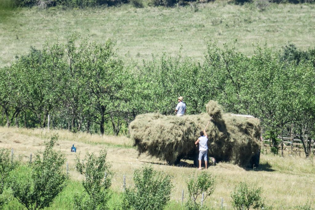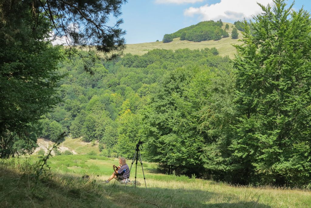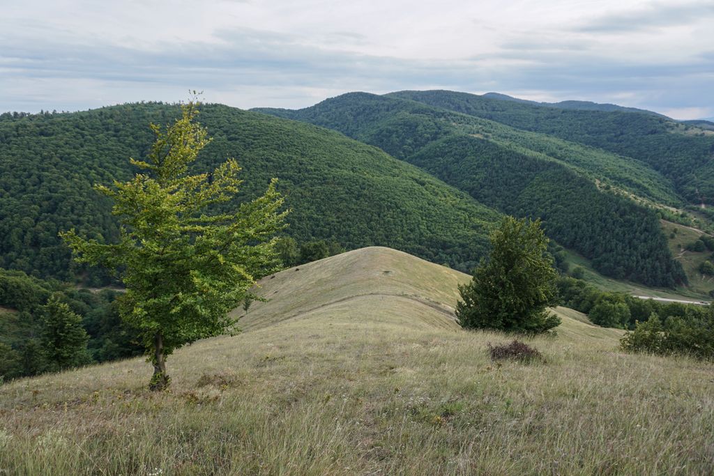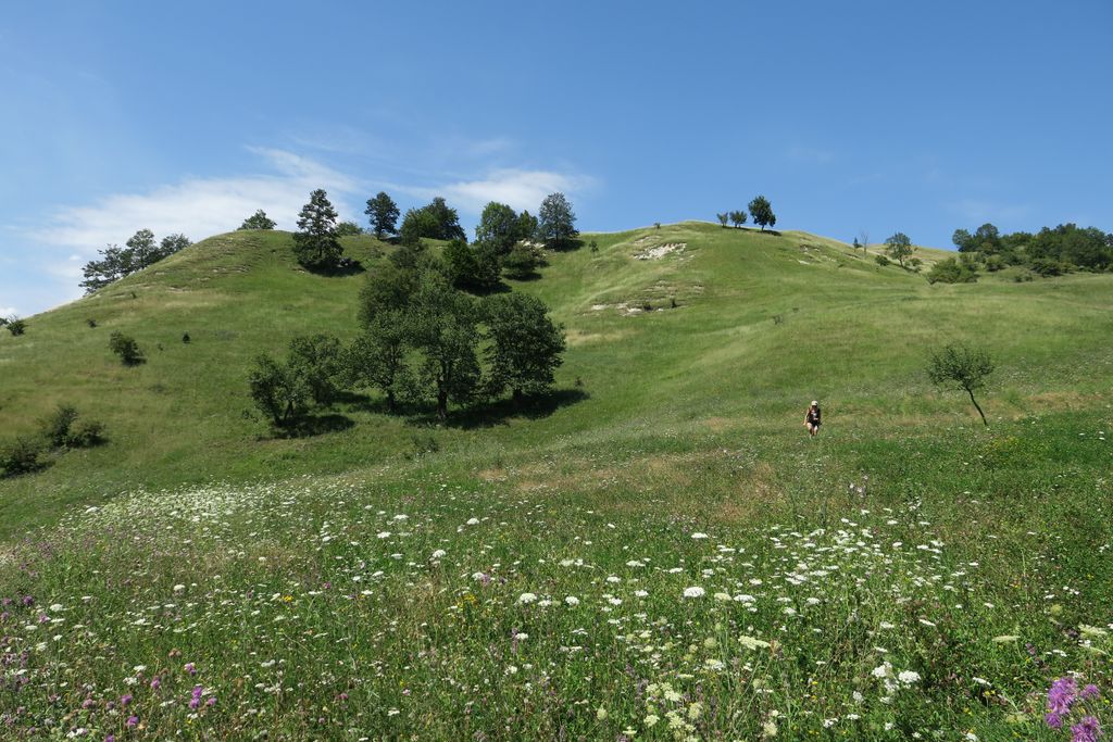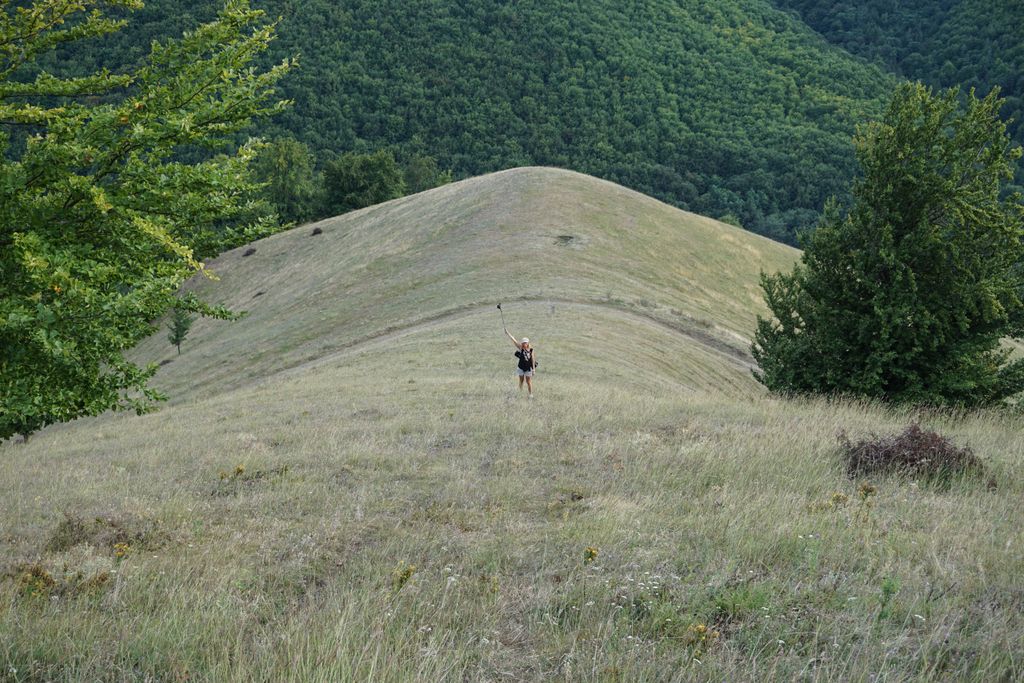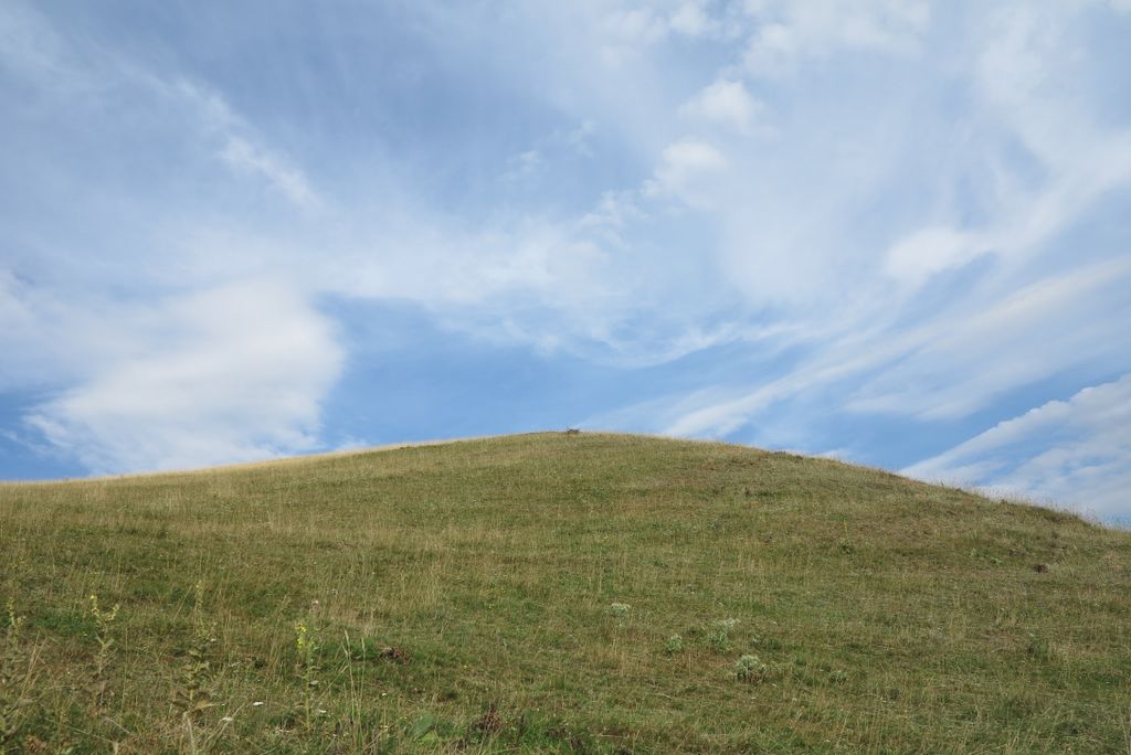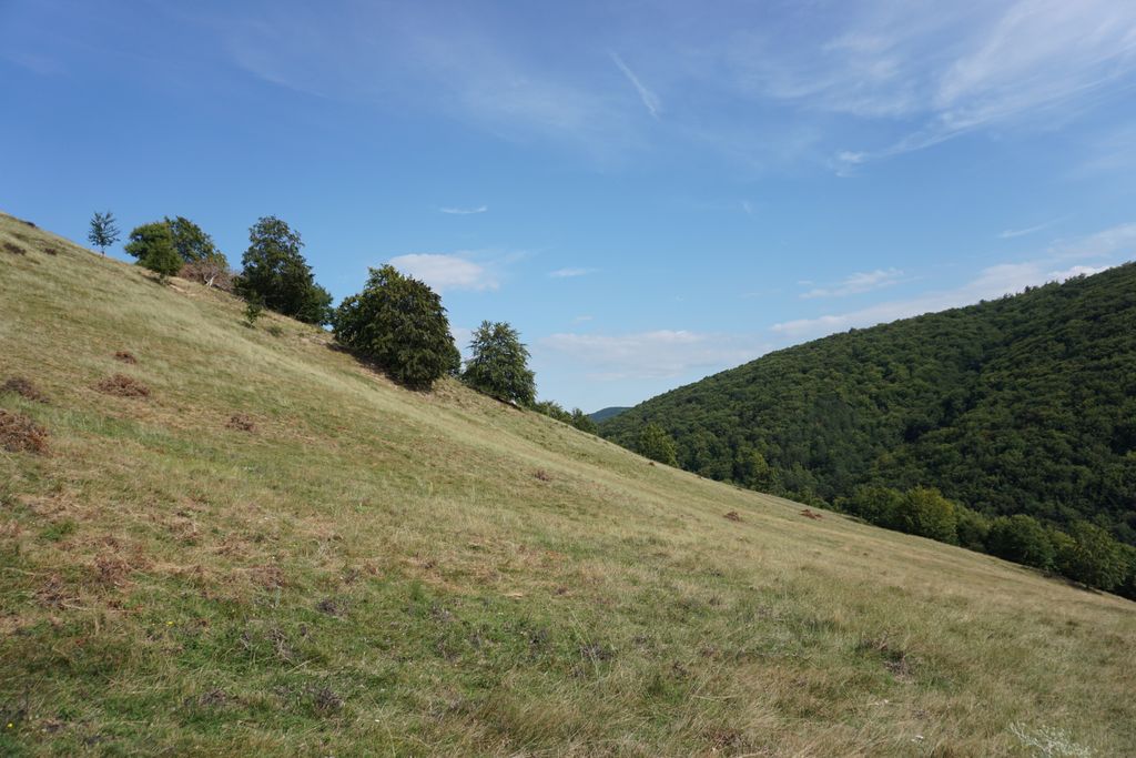 Am crezut că am văzut ce era de văzut, după ce am cutreierat dealurile ăstea aproape o zi întreagă, acum vreo doi ani, așa că, atunci când am luat-o la pas, urcând panta abruptă, nu ne așteptam la cine știe ce, doar o ieșire frumoasă, relaxantă, în natură. Însă, pe măsură ce urcam și priveam în jur, peisajul – și cel din imediata apropiere și cel de hăt-departe – ne-a făcut să ne oprim de multe ori și să exclamăm: ”Ce frumos!”. Iar când am ajuns pe ”vârful de lume” – așa cum am numit, imediat, coama de munte care, așa, proțăpiți în vârful ei, părea că e ditamai vârful de munte, iar efectul pădurilor de pe celălalt versant, chiar din dreptul ochilor noștri, a amplificat și mai tare senzația. Da, nu am urcat foarte mult până acolo, și nici nu e cine știe ce înălțime, însă senzația că ești pe un vârf de lume a fost cât se poate de reală. Mai ales când, la un moment dat, auzind un uliu și căutându-l cu privirea pe cer, l-am văzut zburând undeva sub noi.