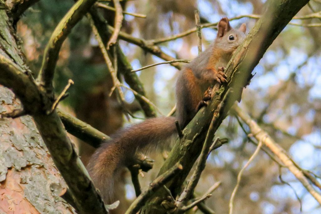 Dimineața ne-au trezit niște zgomote ca niște șfichiuituri ca de bici. Niște veverițe aveau chef de joacă, așa că își învârteau cozile ca niște moriști, chicotind când într-un copac, când în altul. Aveau chef de joacă. Și de ce nu, soarele era deja pe cer, încălzind pădurea.