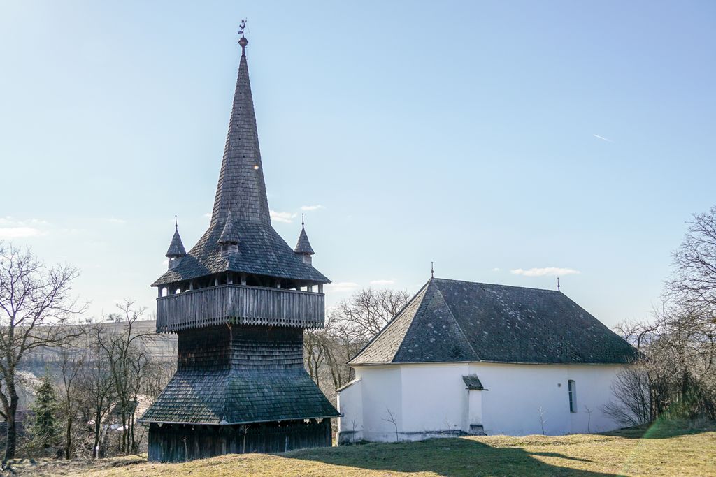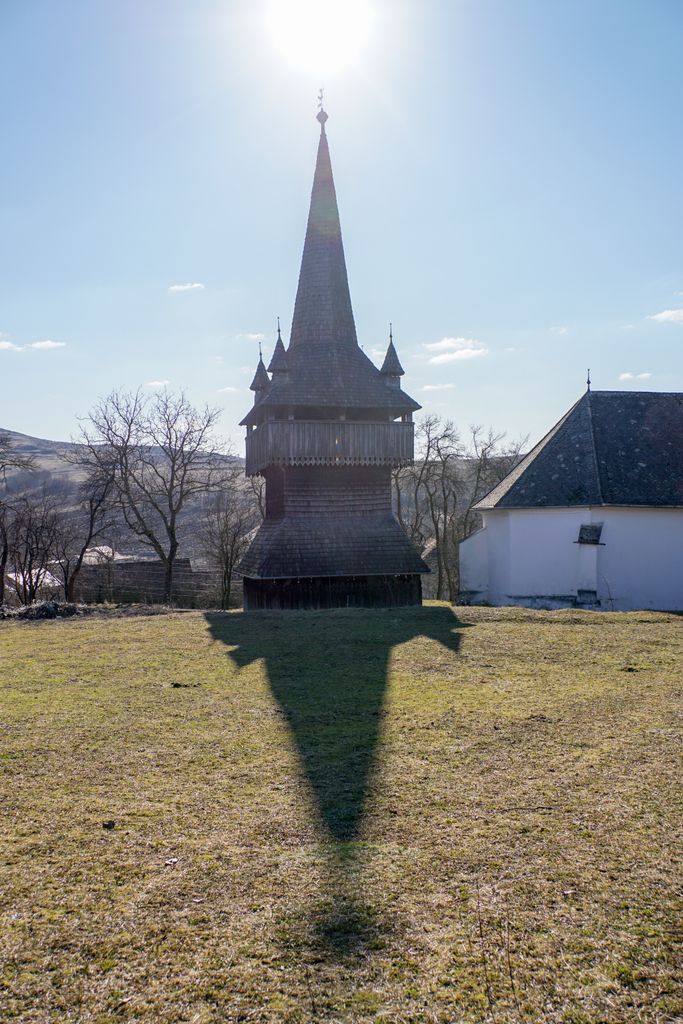”nava” devine colosul ăsta de lemn, iar biserica reformată de piatră, construită în stil gotic, chiar dacă îți captează atenția, la început, se pierde în preajma colosului de lemn, iar clopotnița devine centrul atenției tale: o ”navă”. Și chiar dacă nu aduce aproape deloc cu o navetă spațială modernă, sigur seamănă cu racheta pe care ți-o imaginai atunci când, copil fiind, citeai cartea “Racheta albă” a lui Ludovic Roman. Ori, mai ales, urmărind serialul cu același nume care rula la televizor în anii comunismului (sigur, trebuie să fi numărat măcar până la 4 deceniile vieții, ca să-ți aduci aminte), care vorbea fix despre descoperirea de comori. Iar clopotnița asta imensă poate fi numită ca fiind o comoară. Una a timpului.