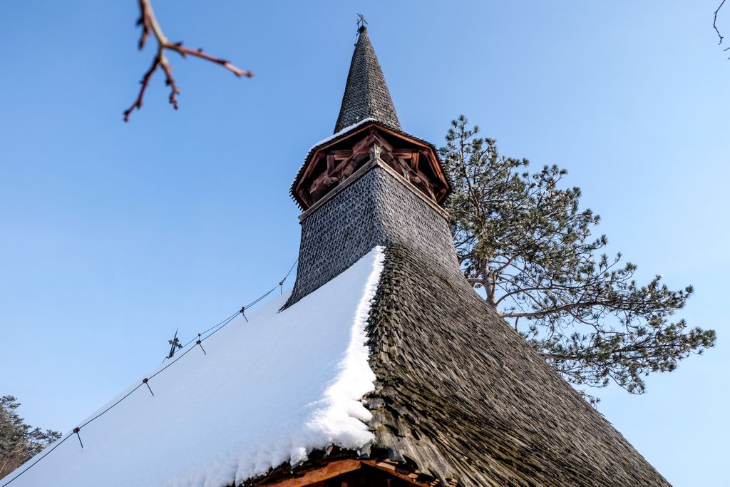 Am intrat în curte și am urcat dealul către biserică, și, până să apuc să privesc de aproape micuța construcție din lemn, Măgura Șimleului m-a întâmpinat cu un