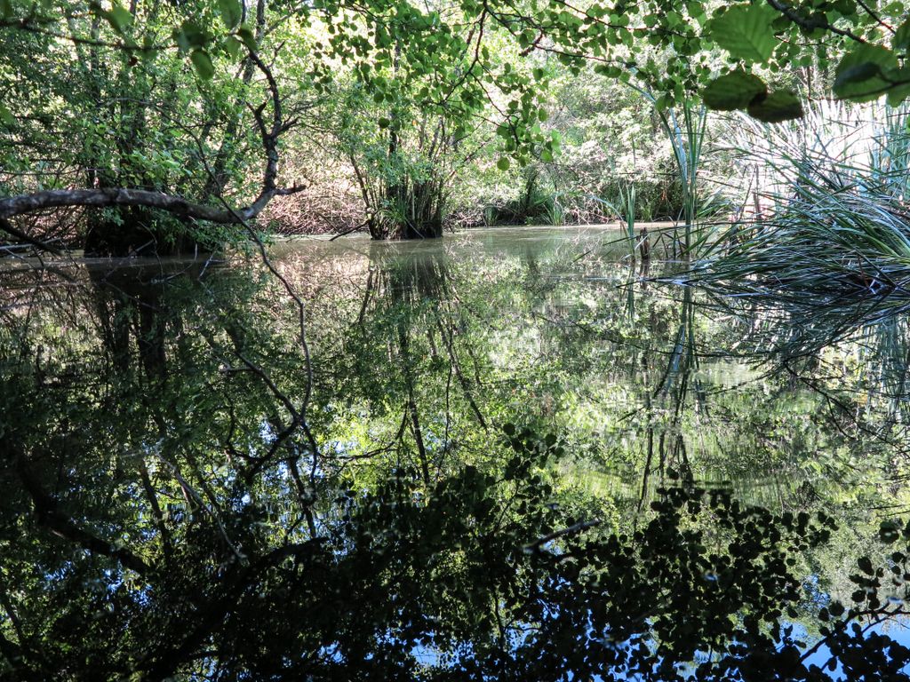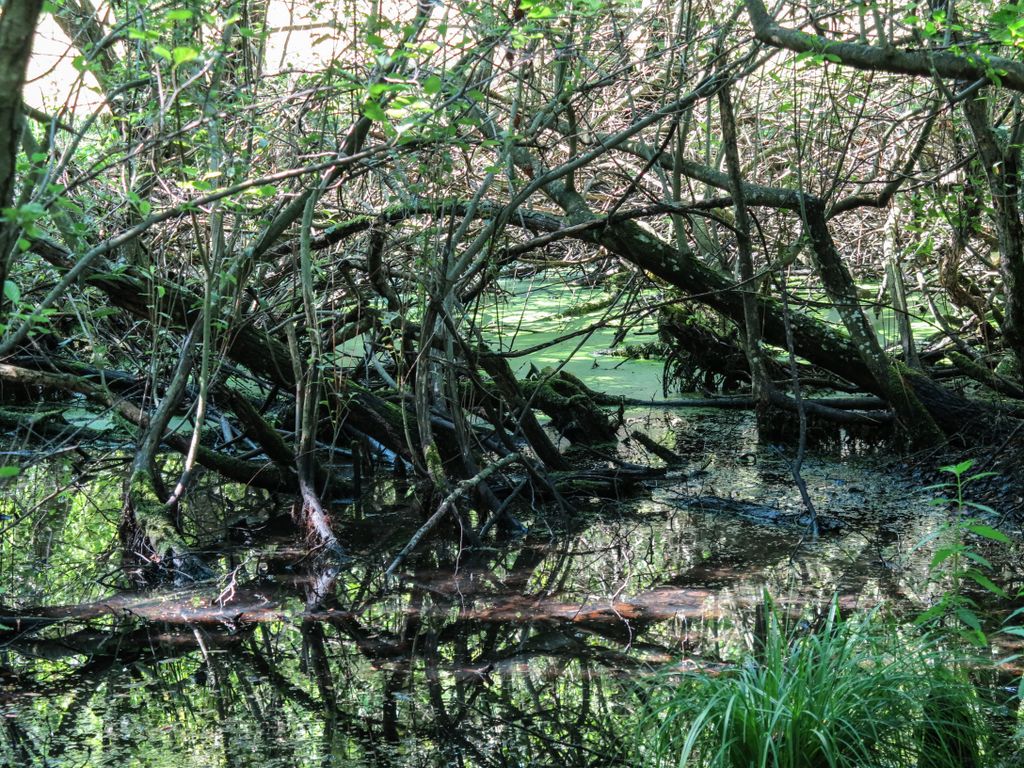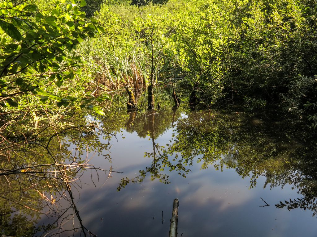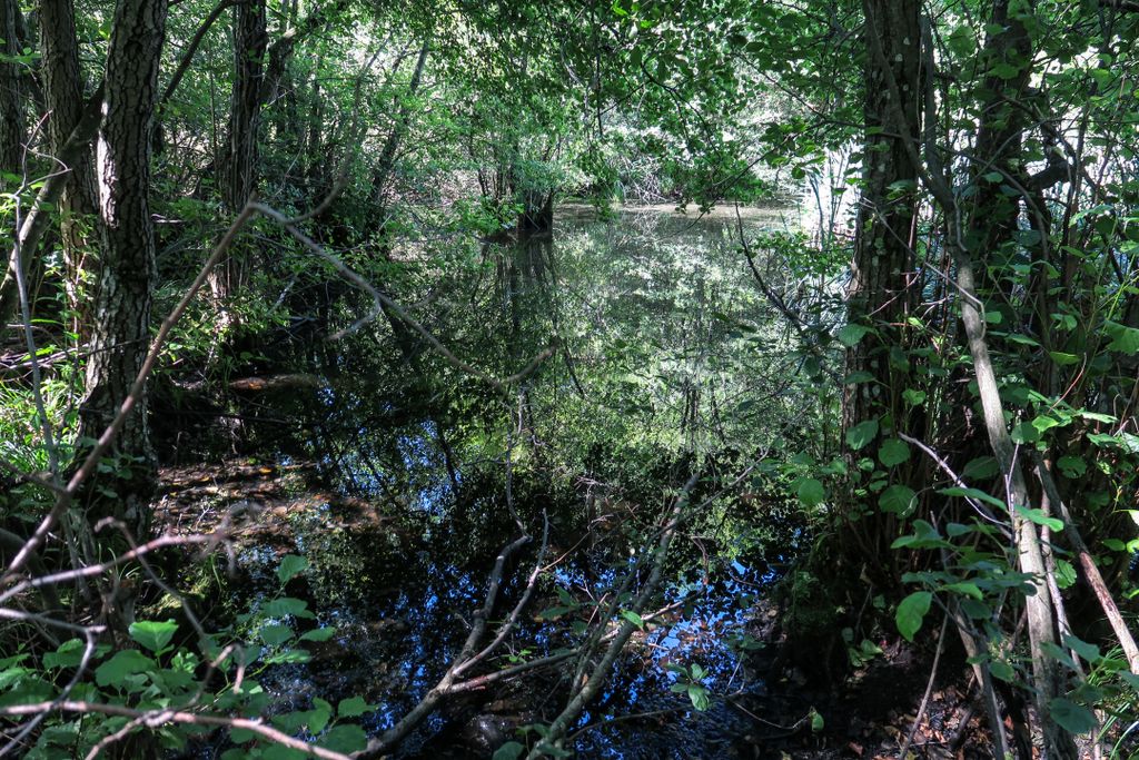 Am mai scris despre ochiul ăsta de apă colorat când în negru, când în albastru închis ori orice altă culoare ar putea să împrumute apa de la vegetația bogată de acolo. E un loc plin de mister, chiar dacă misterul ăsta e mai mult rodul imaginației proprii. Și atunci, când soarele ardea deasupra, plin și de țânțari. Și dacă sînt țânțari, și sînt și eu, clar, țanțarii au câștig de cauză, în sensul că, până să-i pot depista, plesnindu-i de pe picioare, de pe mâini, de pe gât, ei apucă să mă înțepe și să-și ia porția de sânge, cauzându-mi, ulterior, scărpinături peste scărpinături.