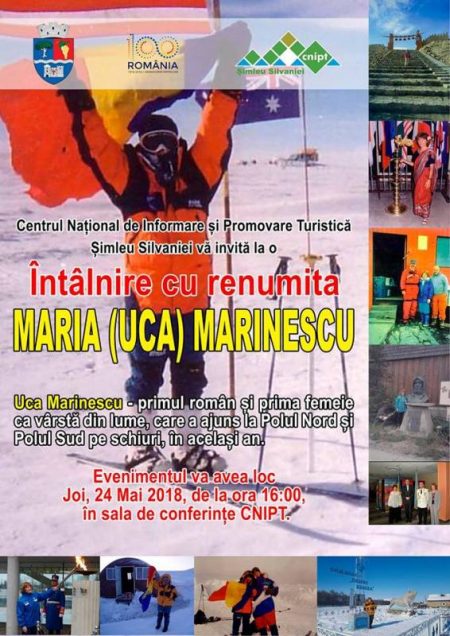 Centrul Național de Informare și Promovare Turistică Șimleu organizează joi, 24 mai, de la ora 16:00, în sala de conferințe a CNIPT o întâlnire cu Uca Marinescu – profesor, explorator și președinte a Comisiei de Sport și Mediu din cadrul Comitetului Olimpic Român. Ea este prima sexagenară din lume care a atins pe schiuri, într–un singur an calendaristic (2001), cei doi poli ai Pământului. Ambele performanțe au fost realizate în cadrul unor expediții polare ghidate de tipul “ultimul grad”. Ca o recunoaștere a meritelor excepționale, la data de 15 iulie 2002, președintele României i–a acordat Ordinul Național „Pentru Merit” în grad de Ofițer.