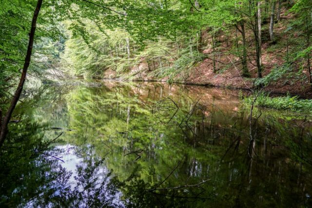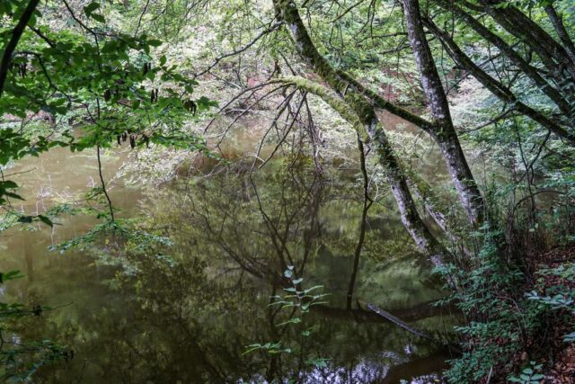 Și am avut. Din pădurea care părea că crește chiar din apa lacului, lângă picioarele noastre tabloul impresionist a prins viață. Crengile înfrunzite, de un verde crud, ale copacilor înalți, semeți, crengile uscate aplecate deasupra apei, nuanțele de albastru, verde, roșiatic, covorul de frunze uscate, toate se reflectau în apa lacului într-o nebunie de culori și lumini. Și, stând și privind cu ochii mari superbul tablou al naturii, am zis: ”Da. E cel mai frumos lac din Sălaj.” Nu e cel mai mare, și e aproape necunoscut, însă are acea caracteristică a lacurilor de la munte, și anume pantele abrupte împădurite care par că intră de-a dreptul în lac, dându-ți impresia că sub luciul apei crește încă o pădure, una care doar se întrezărește printre reflexiile colorate pe care lacul le-a strâns în apa lui. Superb!