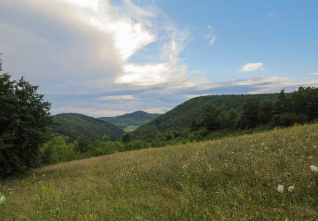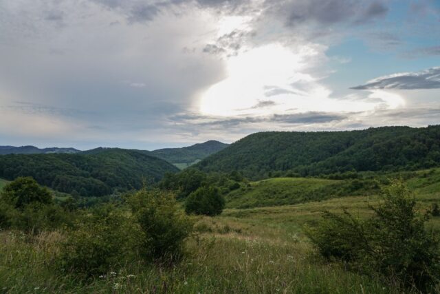 Am coborât panta foarte abruptă și, odată ajunși la mașina lăsată la câteva sute de metri mai încolo ne-am pus, în sfârșit, jos, rezemându-ne de niște trunchiuri de copac. Inițial așa ne-am hotărât, să rămânem peste noapte cu cortul. N-a fost să fie, din motive de accidentare și grijă față de celălalt, absolut firească atunci când mergi în echipă. Și pentru că voiam, totuși, să ajungem la Șura Pinții (deși știam că nu o să avem suficient timp la dispoziție, mai aveam cam o oră și un pic până se întuneca), am mai făcut un efort și am luat iar în piept vegetația deasă, urcând, de data asta, pe lângă pădure.