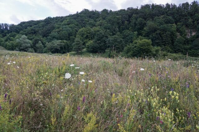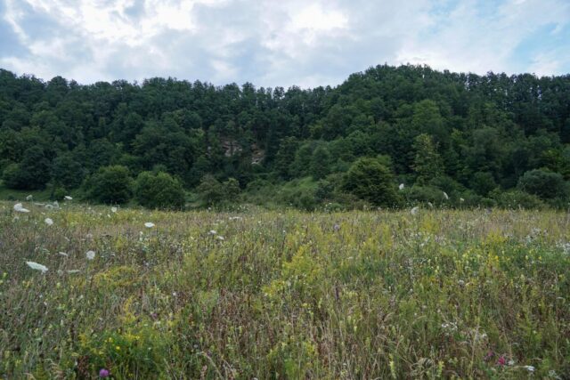 Bun, ne-am zis, urcăm doar până la jumătate. Însă, ca să ajungem la baza dealului, trebuia să trecem de pajiștea de lângă noi, dincolo de vale. Am trecut valea, și am pornit veseli către deal. Am călcat lejer în iarbă și m-am trezit că mă scufund. Unde? În iarbă, în vegetația luxuriantă, înaltă de multe ori cât un stat de om, care ne-a făcut înaintarea anevoioasă. Împiedicându-ne aproape la fiecare pas în vegetația înaltă, care se agăța de tine din toate părțile și prin care nu puteai să vezi unde o să pui piciorul, am ajuns la baza dealului. Am zis că urcăm de-a dreptul, așa cum ni s-a spus, până la jumătate. Atâta tot că urcatul ăsta una era pentru săteni, alta era pentru noi. Adică, ei se refereau să urcăm dealul până la jumătate, nu panta abruptă, către vârf. Noi, desigur, am urcat către vârf, nu către capătul dealului.