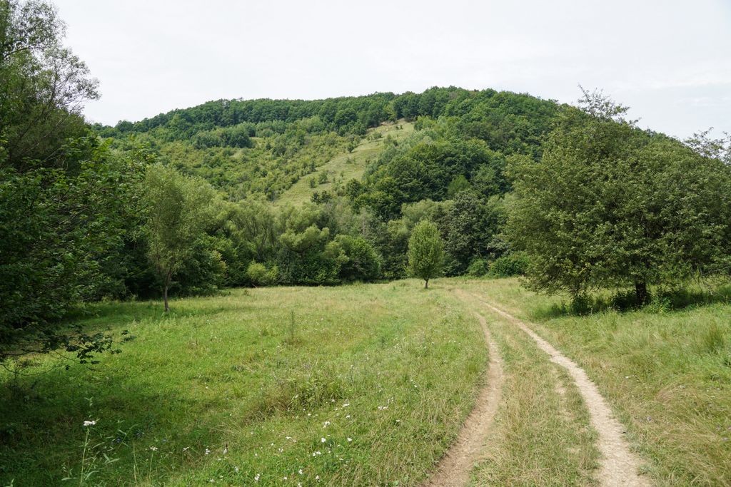 M-am uitat la valea pe care trebuia să o trecem cu mașina. Nu era cine știe ce, mâlul gros și noroiul de pe mica pantă de pe celălalt mal al văii fiind un hop pe care poate-l treci, poate nu, însă am decis să mergem pe jos, mai ales că nu e nici foarte departe (cam 1 kilometru și ceva).