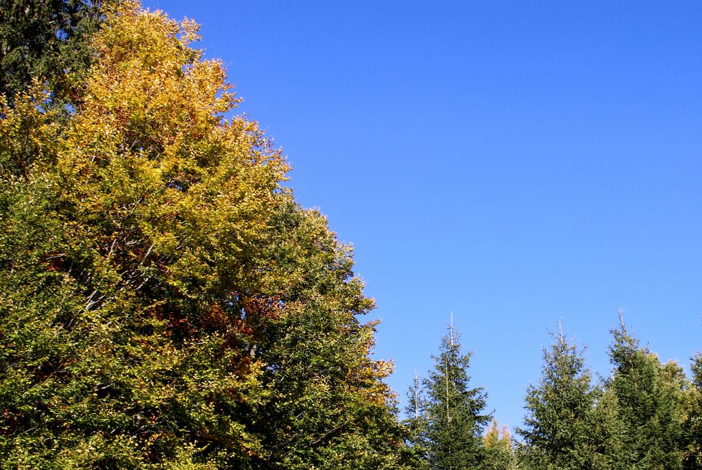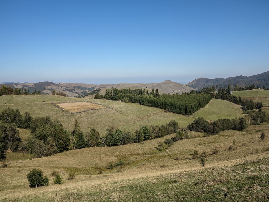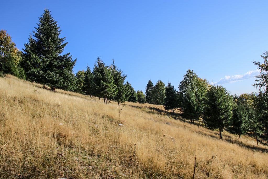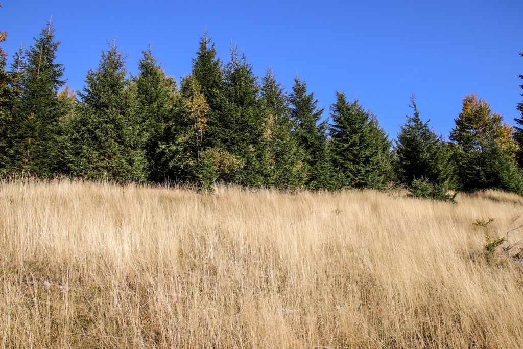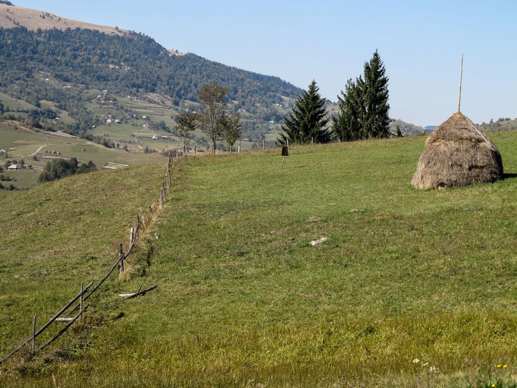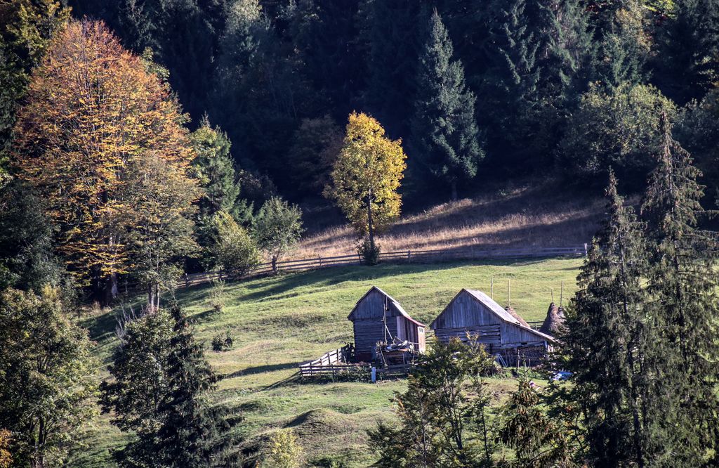 Am urcat pe Valea Răchițele, trecând pe lângă casele țărănești, tot mai puține, până au dispărut și au lăsat locul pădurii. Și am oprit de multe ori să privim în jur, chiar dacă am plecat destul de târziu pe traseu (asta însemnând cam ora 16), însă de asta am venit, să descoperim lumea din jur. Iar muntele ne-a lăsat să-l descoperim, întâi câte puțin, pentru că de pe drumul care urcă șerpuind nu poți să vezi foarte mult, apoi, odată ajunși pe pasul Prislop, am putut vedea până hăt-departe. Și dacă tot am văzut, am ales să nu urmăm drumul asfaltat către Doda Pilii, ci să o luăm la stânga, pe drumul forestier care duce pe platoul montan din apropiere, acolo unde galbenul ierbii se îmbină cu verdele brazilor și cu arămiul foioaselor.