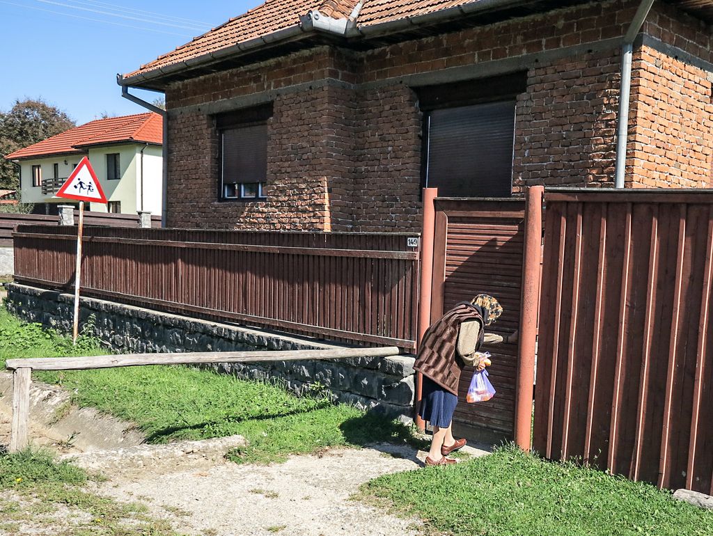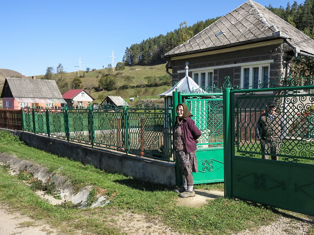 Pe ea am întâlnit-o în prima zi, atunci când ne îndreptam către Doda Pilii. Dincolo de drum, mânuia o ditamai creanga, încercând să curețe un jgheab prin care apa ajungea la cei care treceau pe drum. O ditamai creanga pe care puțini dintre tinerii de la oraș, acești ”pussy” moderni, ar fi putut să o mânuiască atât de ușor ca femeia asta de vreo 70 și ceva, 80 de ani. Și nu doar fizic, ci zâmbind, știind că trebuie să facă asta, pentru ca apa care curge pe acolo să poată fi băută. Să știi ce înseamnă să trăiești, nu doar să fii. Ne-am oprit în dreptul ei, am salutat-o și i-am zâmbit larg. ”Pot să vă fac o fotografie?”, am întrebat-o, deși știam că o să zică ”da”, dar am vrut să îi văd sclipirea din privire și zâmbetul ăla sincer pe care doar puțini oameni îl mai au.