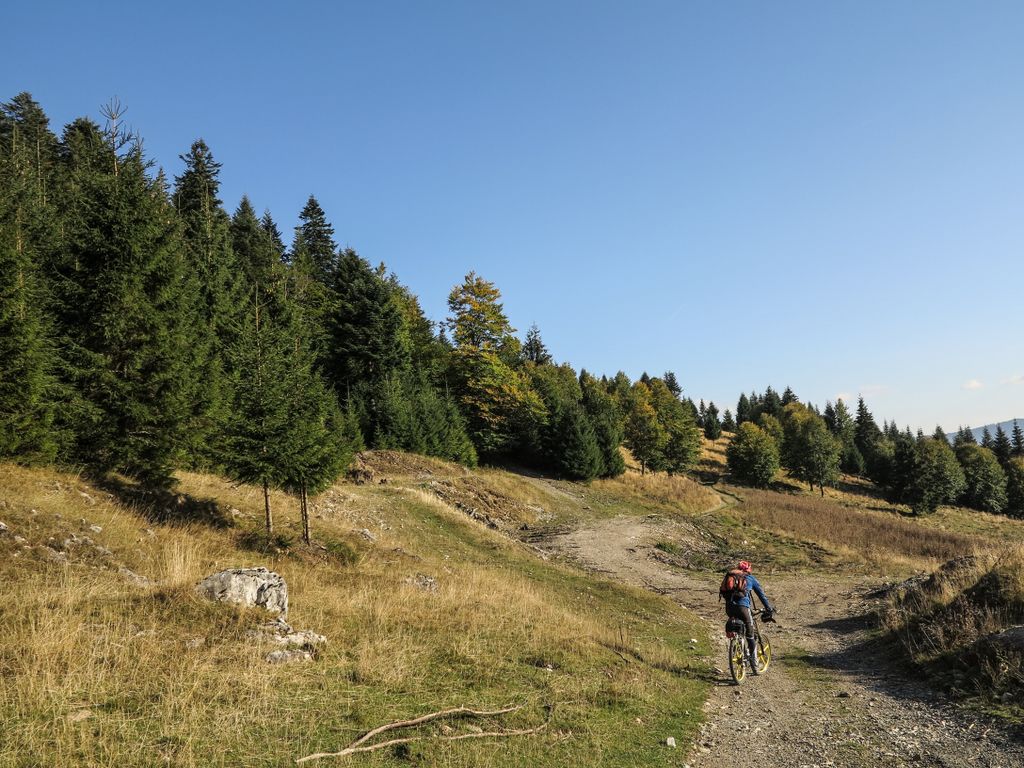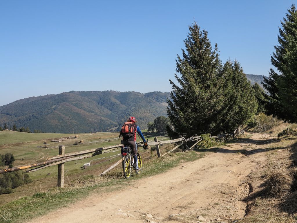 E o senzație de libertate absolută, cu fiecare porțiune de drum pe care o străbați pe bicicletă, urcând tot mai sus, acolo unde orizontul înseamnă munte cât vezi cu ochii, unde pădurea păstrează liniștea aceea de început de lume, o lume în care natura e la ea acasă. Și sus, departe de lumea civilizată, povestea muntelui e aceeași cu povestea oamenilor care, de când se știu, locuiesc acolo, parte din natură într-un mod atât de firesc și de frumos încât sînt o încântare. Și ai sta să îi privești, să îi asculți cum prin două, trei vorbe, parcă îți spun o poveste întreagă, iar tu, cel care ai ajuns să îi întâlnești pe oamenii ăștia ale căror vieți nici măcar nu mai au numărătoare, ci există pur și simplu, devii parte din povestea aceea. Pentru atât cât e să fie.