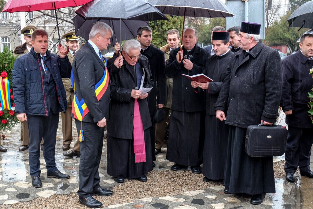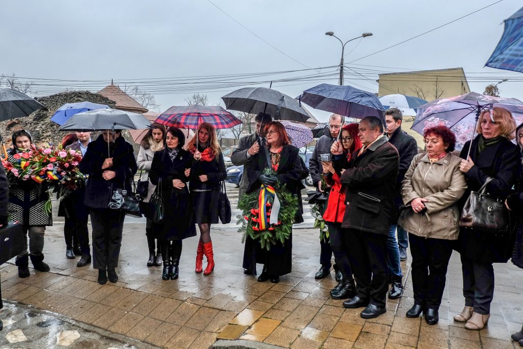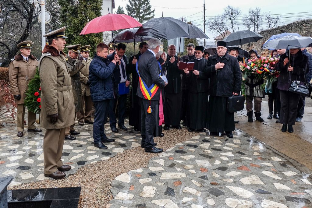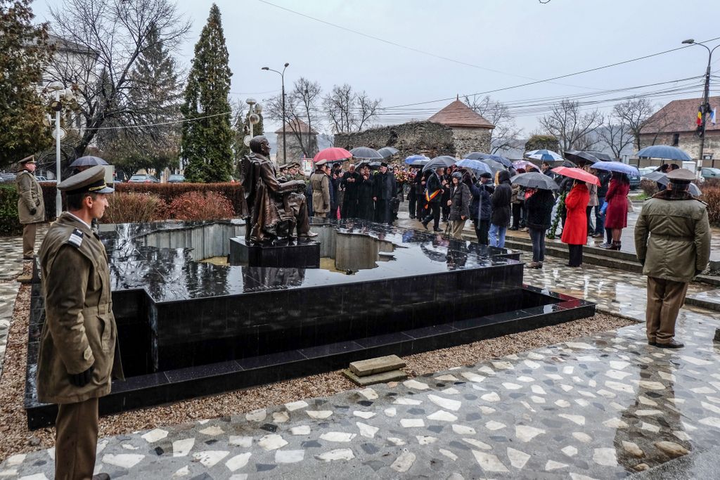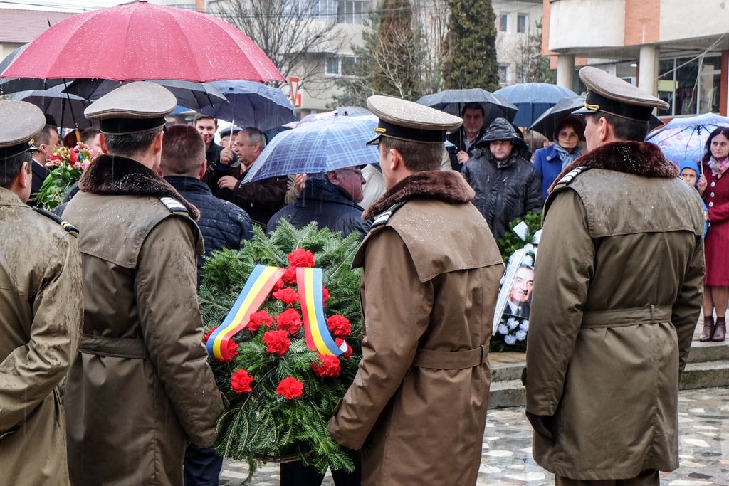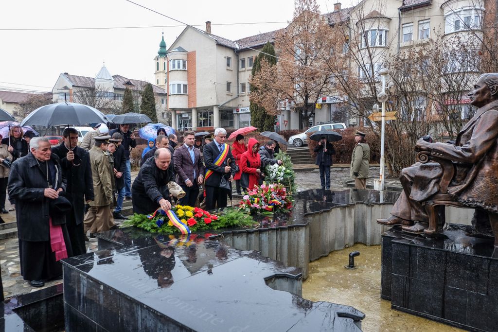 În continuare, cei prezenți s-au deplasat la monumentul lui Iuliu Maniu amplasat în centrul orașului de sub Măgură, unde au depus coroane și jerbe de flori, momentul fiind, în ciuda ploii torențiale, unul festiv.