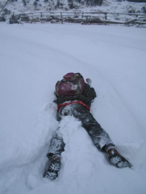 Zapada groasa, neatinsa, este la picioarele noastre, cat cuprinzi cu ochii. Stejarii se inclina, parca, in fata noastra, cu ramurile incarcate de nea. E atata liniste in jur, nu se aude chiar nimic, “suntem, din nou, acasa”, spune Calin, intins pe covorul de zapada ce-l cuprinde, parca, intr-o imbratisare rece. Soarele se vede deasupra noastra ca si un bec in fata caruia a fost trasa o cortina de ceata. Ne punem in miscare, iar bokken-ul intra, rapid in zapada pana la jumatate. Noi, dupa el. Calcand in zapada de peste 50 de centimetri, ai senzatia ca ai face un pas spre infinit, calci, lasi piciorul sa curga in jos, solul nu mai vine, doar intr-un tarziu, cand zapada iti ajunge pana la genunchi. Nu stiu de ce, am senzatia ca la fel simt si colegii care se aventureaza spre K2 sau spre Polul Nord: nimeni nu este alaturi de tine, decat gerul, vantul si zapada. Dau drumul unui strigat prelung, la care-mi raspunde doar un ecou ce loveste platoul in cel putin sapte tonalitati diferite. Suntem liberi, din nou, fixam cap compas Calea Romanilor si fara sa ne mai gandim la ce ar putea ascunde zapada sub ea, ne taram in nametii care parca incearca sa ne imobilizeze. Peretii Caii Romanilor sunt acoperiti de zapada, iar Calin nu se rabda sa nu incerce o saritura. Zboara vreo 3 metri, aterizeaza si-si continua caderea intr-o rostogolire cum scrie la carte. Suntem versati, am facut treaba asta de zeci de ori la Gradina Zmeilor. In alte conditii mult mai periculoase. As vrea sa incerc si eu, dar instinctul imi spune sa stau deoparte: picioarele mele nu sunt inca recuperate complet. Continuam drumul, trecem pe langa Grota Uriasului, nu mai coboram la ea, am vazut ce era de vazut azi vara, acum obiectivul nostru este cascada. Ocolim zona stanelor, pe acolo s-ar putea sa dam nas in nas cu niste caini ce-ti sar ciobaneste la gat si chiar nu avem nevoie de asa ceva. Trecem pe langa maracinisurile care marginesc panta spre vale si ne zicem ca ar fi mult mai usor sa ne punem, pur si simplu, pe spate, sa ne dam drumul la vale. Aiurea, zapada nu se lasa si degeaba ne tot aruncam, nu alunecam deloc in jos. N-avem ce face, continuam coborarea in sarituri scurte, ca si Armstrong, in timp ce pasea pe Luna, intr-o atmosfera cu o gravitatie mult mai redusa. Senzatia e chiar placuta, una de plutire. Ajungem, usor, fara nici o dificultate, la padurea ce continua in panta drumul spre vale. Un jogging scurt printre copaci si suntem la buza raului. Iar cascada este doar la cativa pasi, in fata noastra.
