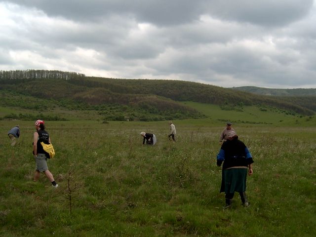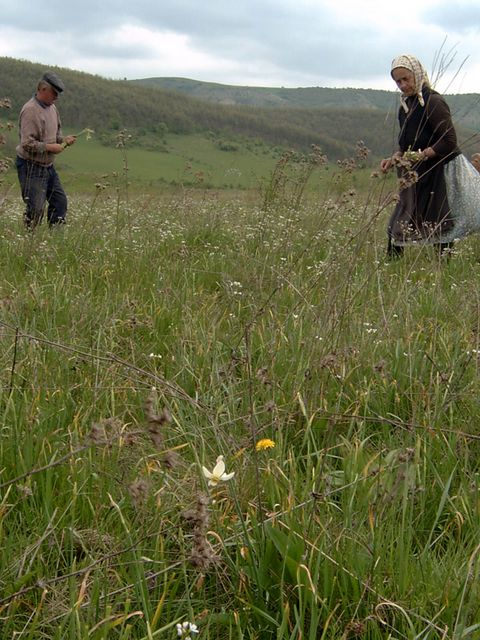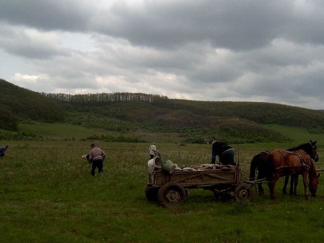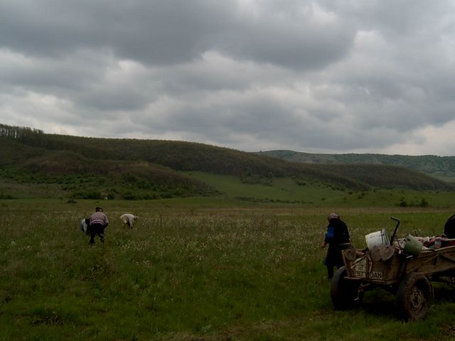 Poiana are, dupa aprecierile noastre, cam 250 de metri lungime si, in unele locuri 50-70 metri latime, insa este inconjurat de un teren mlastinos, pe care trebuie sa calci cu grija, altfel ramai fara tenisi. Cu siguranta, atunci cand infloresc, iar asta, de obicei, spre jumatatea lui mai, poiana trebuie sa arate extraordinara. Interesant, nimic nu marcheaza rezervatia naturala, nu exista nici o placuta, care sa spuna ca e interzisa ruperea plantelor, nimic. Ei, dar asta e o lipsa pe care o vom remedia noi, imediat cum ne vom intoarce din marea expeditie. Din pacate, prin poiana se vad urmele carutelor, indicand ca pe acolo este o ruta obisnuita de-a satenilor. Mai mult, ici-colo, printre tulpinele de narcise mai pot fi “admirate” si baligi, existand chiar si portiuni in care tulpinile arata ca si cum ar fi fost cosite. Dar, cel mai probabil, acestea au servit doar ca mancare pentru vite. Mormaind a nemultumire, urechile noastre sensibile disting, undeva din departare, niste zgomote ciudate, acestea fiind scoase de niste tarani care faceau raliu pe o caruta trasa de doi cai. Ei se apropie de noi, noi ne apropiem de ei, ne intalnim si-l pun pe Calin sa-i tina de vorba pana cand le trag cateva poze. Iar oamenii ne spun o gramada de chestii interesante.