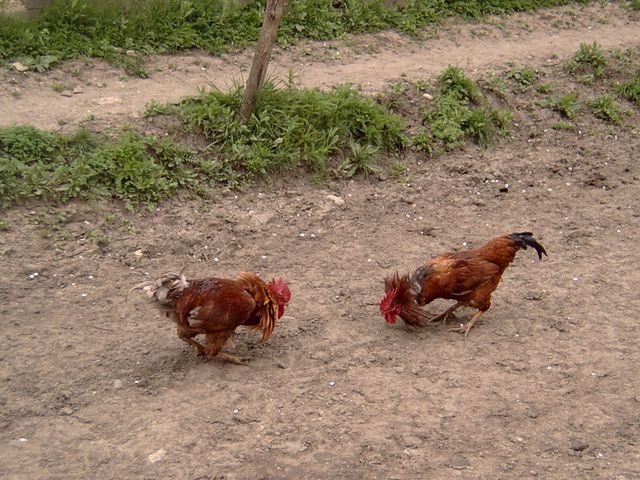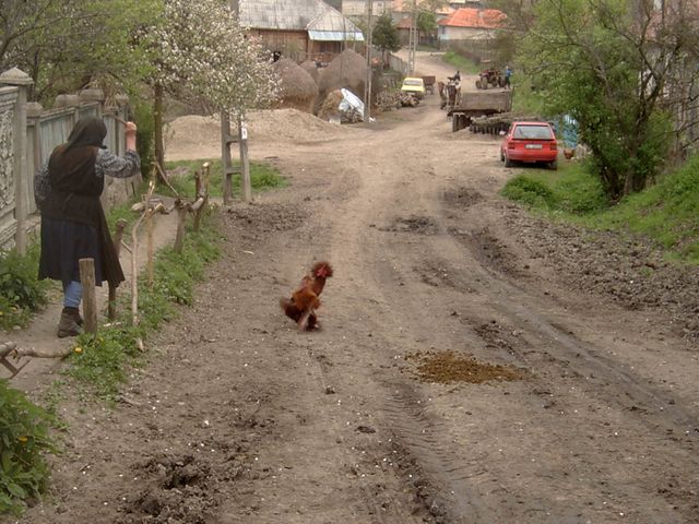 Am cam terminat pe ziua de azi, asa ca facem cale intoarsa spre sat, unde am lasat-o pe aia mica si rosie. Pe drum ne intalnim cu mai multi sateni care ne intreaba unde-s narcisele. “Sunt acolo pe camp, nu au inflorit inca!”, le raspundem, si chiar de-ar fi inflorit, tot nu le-am fi cules, continuam noi in gand. Chiar la intrarea in sat dam peste doi cocosi luati la tranta. Situatia este atat de comica, incat ne prapadim de ras. Mai ales ca cei doi, cu penele zburlite, nici nu par a baga in seama batranica care incearca sa-i astampere cu o bota in mana. Seamana atat de bine cu ceva personaje din mediul politic!