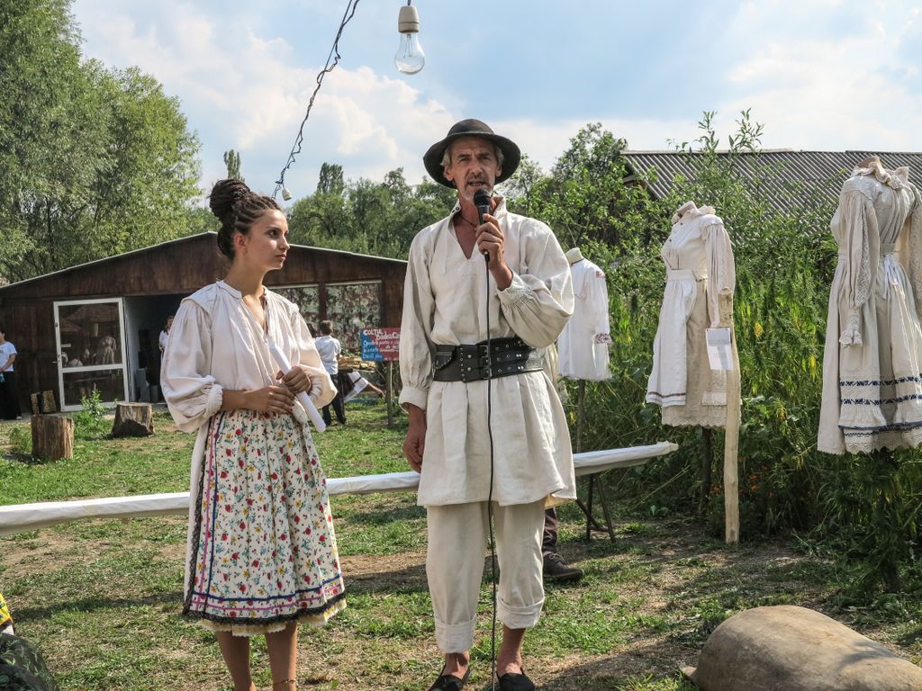 Despre Mirel Magop sînt multe de spus, și, tocmai de aceea, am mai scris despre el. Aici, la Marin, el a venit în rolul lui Badea Cârțan, aducând cu el o grămadă de cărți la Colțul lui Badea Cârțan, într-un fel de promovare a lecturii, fiindcă, zice el, ”lectura înseamnă cunoaștere, și cărțile trebuie să circule din mână în mână, să transmită informația, nu să stea în biblioteci”. Cât despre cânepă, vrea să pună umărul la mișcarea asta a cânepii, pentru că s-a îndrăgostit de portul popular, de cămașa de cânepă cu care a făcut pe jos drumul până la Roma, refăcând traseul lui Badea Cârța în cămașa de cânepă țesută în 1911 și, îmbrăcat cu ea (și pe care a purtat-o și la Marin), a ajuns la Columna lui Traian. De unde e și cunoscut ca Badea Cârțan.