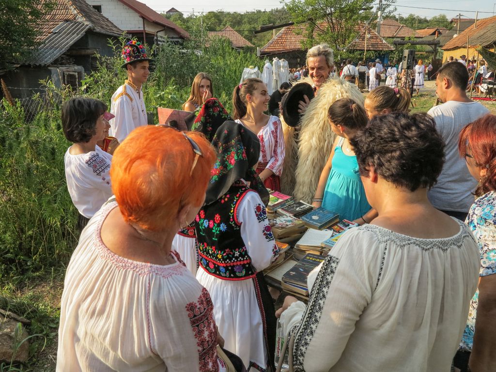 Cât despre cei implicați în toată povestea asta, oamenii ăștia faini pe care Patricia i-a strâns laolaltă, ce poți să mai zici? Adică, oamenii ăștia, care acum au purtat costumul popular pentru a recrea povestea lui Iuanea lu` Fiţ şi Floriţa Petrii Stropii, au fost atât de ”adevărați” în tot ceea ce au făcut, că nu aveai cum să nu-i îndrăgești. Și totul a fost ca o întoarcere în timp, una reală, atât de reală că de multe ori mi-am spus că, în sfârșit, am reușit să inventez o mașină a timpului, și m-am întors în timp. Și când Alin, adicătelea Iuanea lu` Fiţ, a dat cu clopu’ de pământ chiuind, mi-a venit și mie să dau cu clopu’ de pământ. Atât tot că, deși claia de păr din capul meu seamănă uneori, de la încâlceală, a clop, totuși, l-am lăsat acolo și am dat de pământ cu un clop imaginar. De chiuit, am chiuit doar în gând.