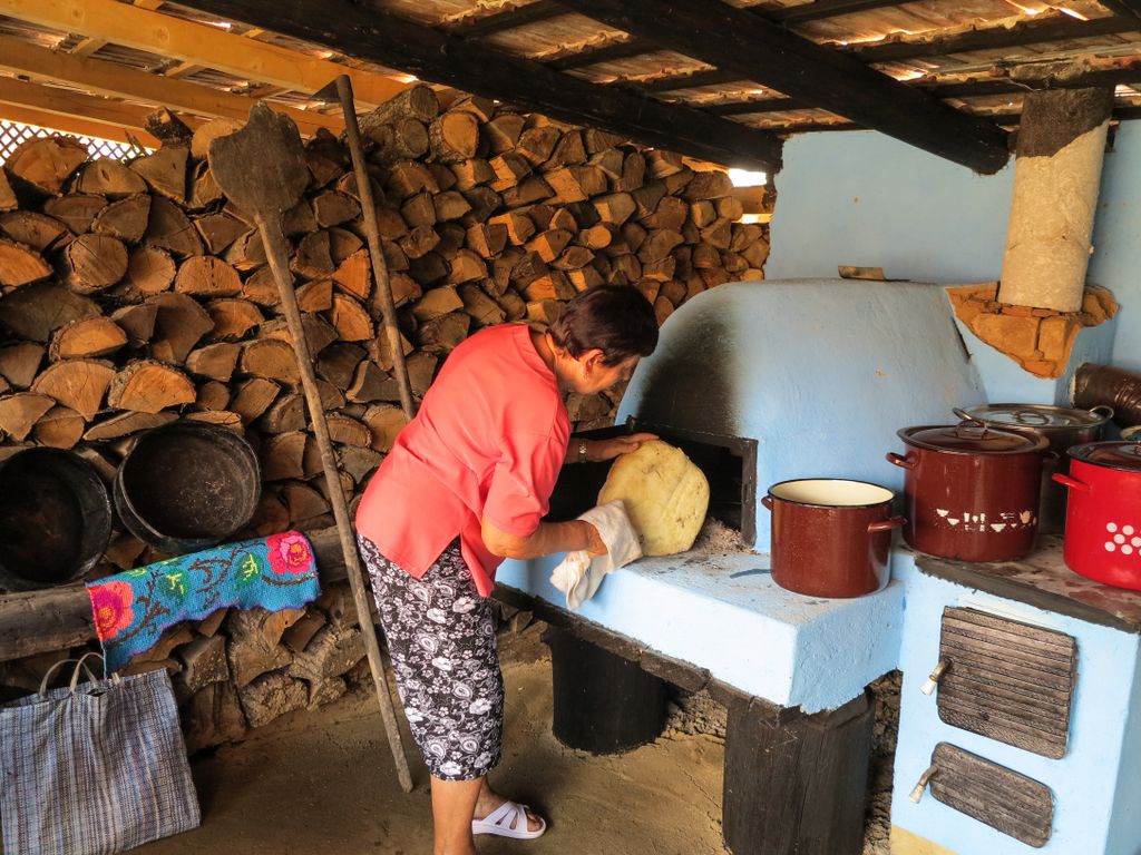 Am mai dat o raită prin casa bătrânească și m-am uitat să văd dacă nu a mai rămas ceva plăcintă cu cânepă. N-am mai găsit, dar am mâncat, la mesele din curtea cu bucate, niște sarmale gustoase și pâine de casă, proaspăt scoasă din cuptor. Un deliciu.