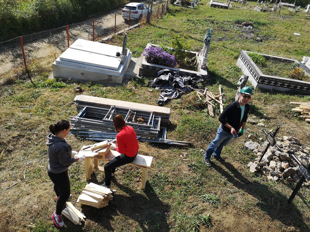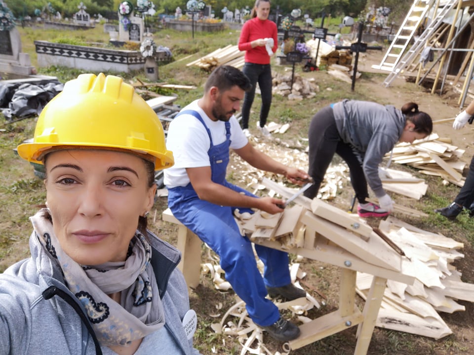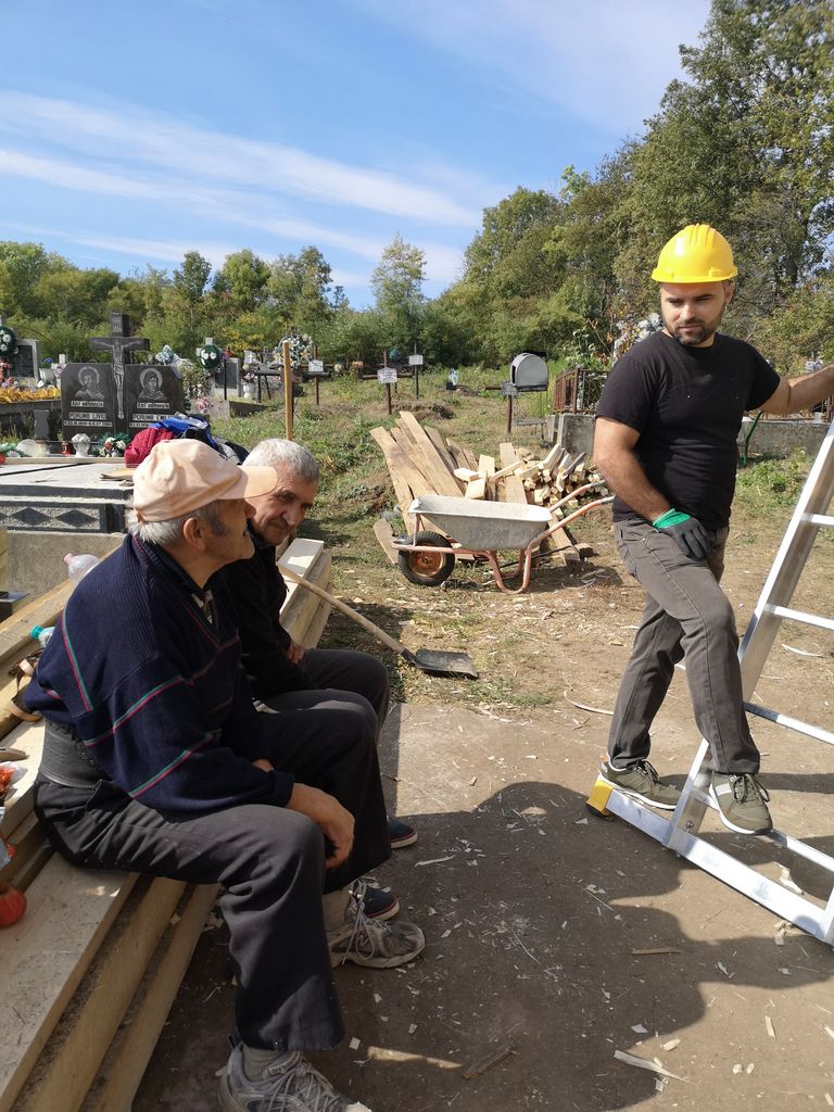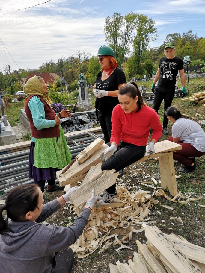 Se înserează ușor. Alin și Florin pleacă la o altă acțiune de susținere a cetățeniei active. Radu și Vlad nu se lasă dați jos de pe schelă. Au bătut 10 rânduri de șindrilă, cot la cot cu meșterii și arhitectul Attila Nagy, un alt voluntar care a făcut echipă cu noi azi. Au pus mâna pe patrimoniu, l-au reparat, l-au salvat. E un sentiment fantastic. Eu și Camelia continuăm să pregătim granițe. De aproape o oră ne tot mobilizăm să plecăm și nu reușim să ne desprindem de locul ăsta.