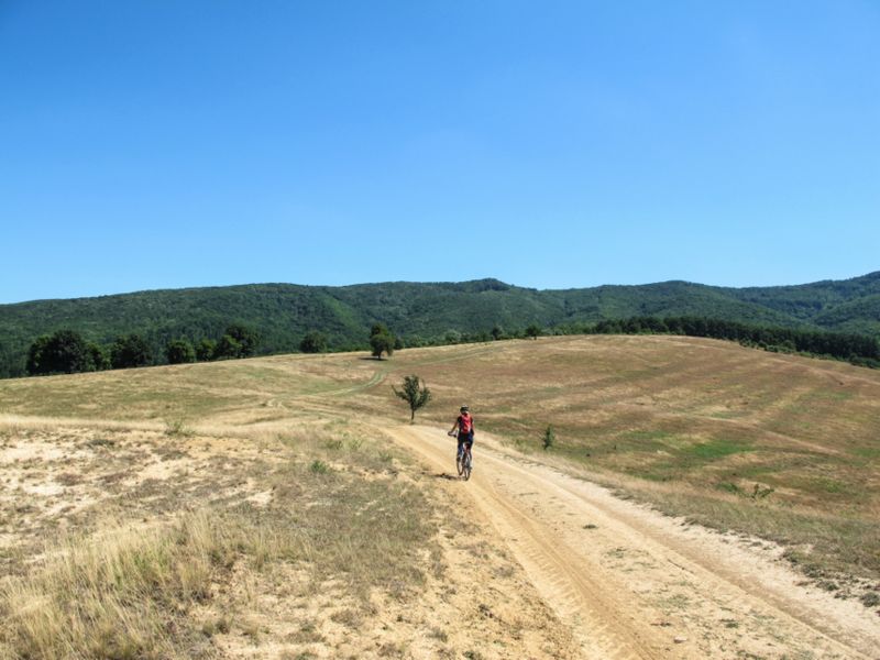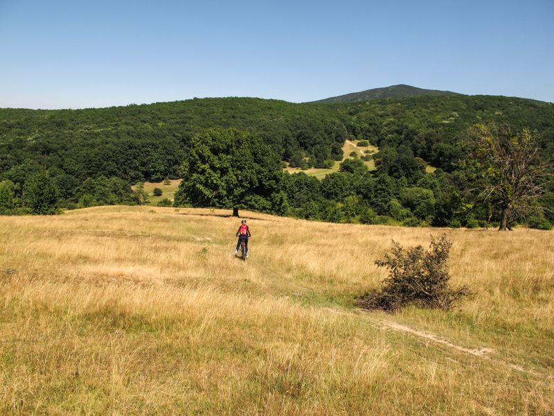Acuma, odată ajuns în pădure, poți să alegi orice drum care îți iese în cale, poți chiar să-ți creezi unul imaginar, doar al tău, în pădure nu există limite pentru cei pedalând. Te ridici de pe șa, căutând, de fapt, mai mult adulmecând, cărările pe care ai putea să mergi, ori pedalezi liniștit, un fel de plimbare de dragul pedalatului prin natură. Senzația e aceeași. Că poți să mergi oriunde. Și chiar poți să mergi oriunde, chiar dacă, uneori, trebuie să te dai jos de pe bicicletă și să împingi. Dar dacă o iei pe drumul din dreapta, cel care duce către poiană, cea pe care o cunosc toți cei care au trecut pe acolo, și urci prin pădure, după câțiva kilometri de urcuș, tot la dreapta, dumul duce către pășune, și, odată ajuns acolo, priveliștea merită tot efortul.