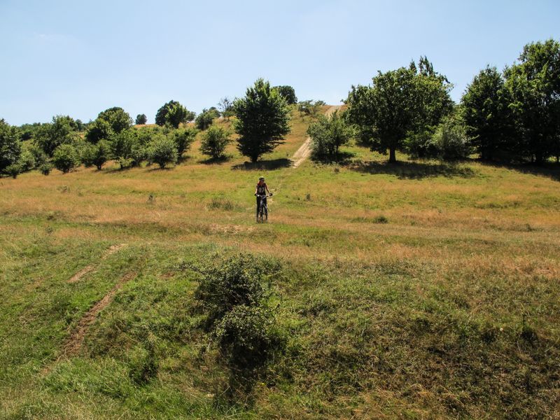 Cum ieși din pădure, în fața ta se întinde pășunea. O pășune ca toate pășunile, și, totuși, nu chiar. Pentru că pășunea asta pare ca un fel de rampă de lansare pentru împătimiții de pedalat prin natură, drumul acela curgând prin iarba arsă de soare, galbenă-portocalie, nu are cum să nu te facă să-ți asculți imboldul de a lăsa bicicleta liberă, să uiți de frâne, să nu-ți pese că s-ar putea să cazi, bucurându-te că ești acolo, doar bucurându-te că ești acolo. E drept, s-ar putea să ai “norocul” să dai peste turma de oi, și evident, câinii care-și fac veacul pe acolo, dar și asta face parte din natură, plus că, dacă ești stăpân pe tine, dacă ceea ce spui prin atitudinea ta e că nimic nu are cum să te atingă, chiar așa va și fi. E un fel de lege a naturii.