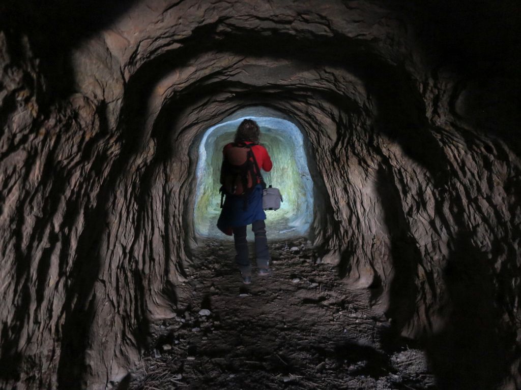 De ce a fost săpat tunelul ăsta așa? Ne-am tot întrebat, stând amândoi cu capul dat pe spate și privind către tavanul aflat sus de tot. Apoi, într-un final, sătui de stat cu capul dat pe spate, ne-am luat lucrurile și am ieșit afară din mină. Nu ca să mergem către casă, ci ca să urcăm deasupra peretelui de gresie, în căutarea locului prin care se intra ori se ieșea din tunel.