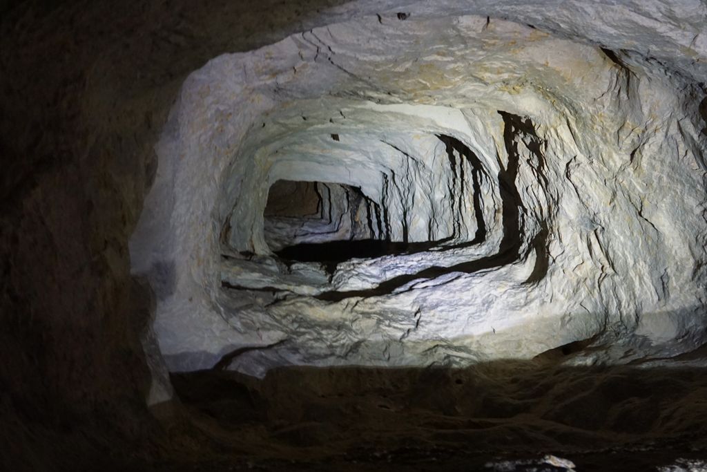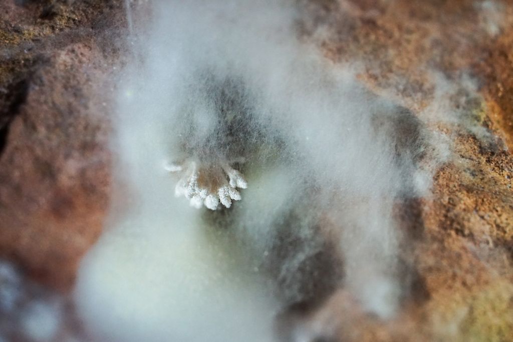 Nu știu dacă mina asta a fost folosită pentru extragerea cărbunelui, însă stratul negru, ondulat al cărbunelui, care se întinde pe bună parte din pereții tunelui orizontal, ba chiar și pe bolta acestuia, asta îți dă impresia, că de acolo a fost extras cărbune. Însă pentru orice ar fi fost săpat în peretele masiv de gresie tunelul ăsta care aduce a mină părăsită, acum, tunelul lung de vreo câteva zeci de metri, vreo 40, 50… să tot fie, cred, e casă pentru lilieci și păianjeni. Și pentru niște ciuperci microscopice saprofite sau parazite, sub formă de filamente, care se înmulțesc prin spori, sau, mai pe șleau spus, mucegaiuri. Cel pe care l-am descoperit pe unul din pereții tunelului are o formă ciudată. În mijlocul ”păturii” albe, pufoase, ca de bumbac, niște pistile albe, ca de flori, însă părând a avea consistența florilor de mină, seamănă cu niște dinți: ”Ăștia-s dinți? Dacă mișcă, clar, o luăm la sănătoasa”, ne-am spus, evident, în glumă, privind de aproape forma asta ciudată de viață, ascunsă în tunelul minei părăsite.
