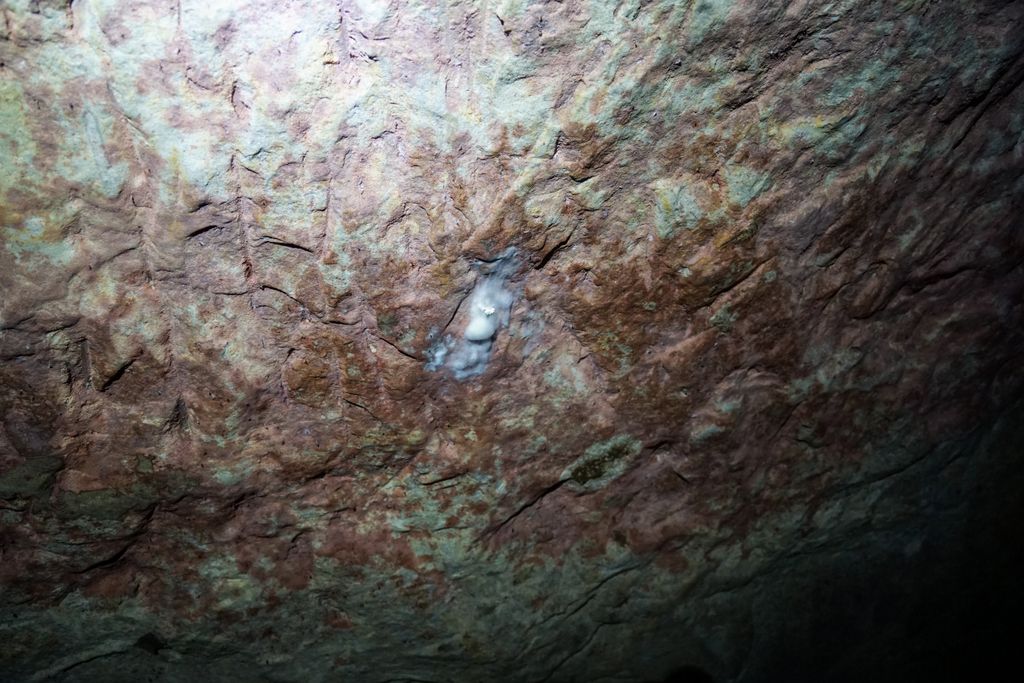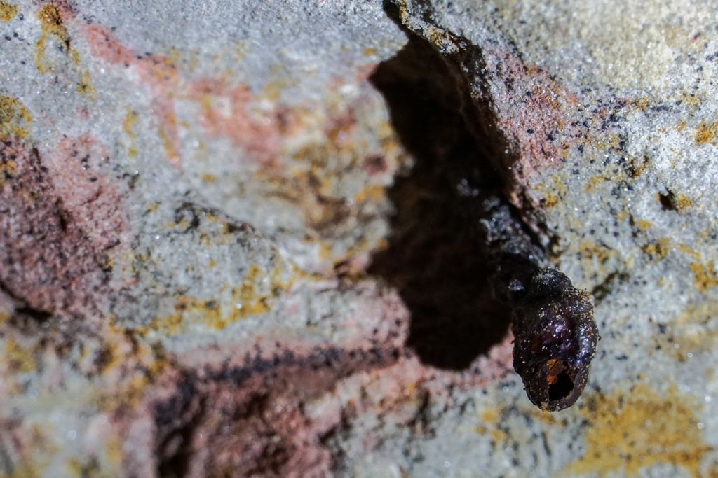 Chiar dacă nu am văzut foarte mulți lilieci, numărul lor acolo e destul de mare, lucru ușor de dedus din cantitatea deloc neglijabilă de guano din tunel. Am zis guano, adică îngrășământ natural provenit din acumularea excrementelor de lilieci din peșteri, ca să nu zic, din prima, caca de liliac. Ee, guano-ul ăsta e prezent în multe locuri din tunelul orizontal. Iar când ajungi la tunelul vertical, e și mai mult, de n-ai unde să pui mâna, că sigur ți-o bagi în chestia asta.