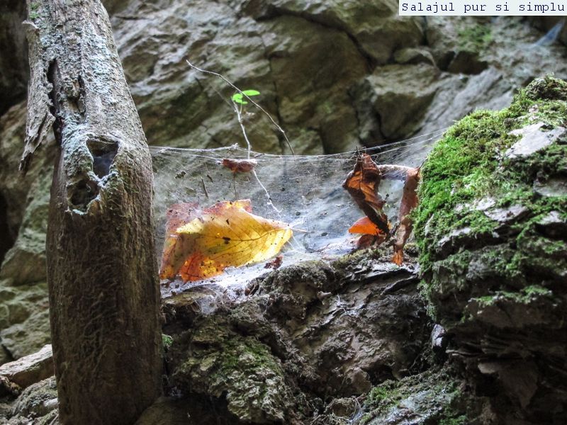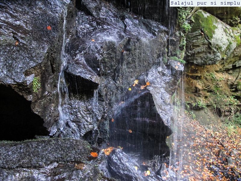 Înaltă de vreo 6 – 7 metri și lată de vreo 10, cascada blochează drumul ca un uriaș cu mâinile întinse. Un uriaș din piatră dură, ud de apa care cade clipocind de deasupra. La poalele stâncii, pietrele sînt colorate ciudat în negru lucios, probabil de la vegetația în descompunere, cine știe?, și totul e alunecos. Însă verdele care îmbracă stânca e viu, iar combinația asta de verde, negru și portocaliul în multe multe nuanțe al frunzelor uscate fac ca locul cu pricina să fie deosebit de frumos. Și chiar dacă debitul de apă nu e foarte mare, cascada e chiar frumoasă, bolovanii mari căzuți cândva de pe versant părând niște ciuperci uriașe, companie pentru ciupercile albe de pe buștenii din jur. M-am apropiat de stâncă și imediat am fost luat în primire de stropii de apă, și, până să-mi dau seama, deja eram ud, ghetele la fel, noroc că, de data asta, aparatura era la locul ei. Am atins verdele care îmbrăca stânca, apoi pietrele negre de sub picioare. Și am rămas cu gândurile agățate de stropii de apă ai cascadei, iar amintiri mi-au dat târcoale, întrebându-mă: “Îți mai aduci aminte?” Cum să fi uitat?