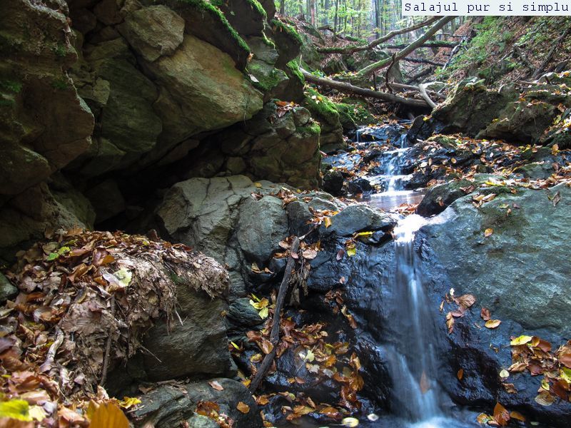 Murmurul din jur, plus globurile de lumină care străluceau în apa care părea neagră, plus mirosul pădurii, plus liniștea, plus toate toate nuanțele de culori pe care le poate inventa toamna, dar mai ales fiindcă soarele avea chef de joacă și construia licurici în fiecare ochi de apă, toate au făcut ca locul acela să pară un tablou pe care ai șansa să-l vezi prinzând viață, un tablou pe care poți să-l întinzi în ce parte vrei, ca să poți vedea mai mult, ori ca să poți să atingi, ori ca să poți să mai adaugi ceva la tot pastelul acela tomnatec frumos și liniștit. Apoi, dacă tot ai ajuns acolo și ai lăsat pașii să te poarte pe cărări, pe cursul văii, pădurea îți mai oferă ceva, așa, ca un cadou între prieteni: Cascada de pe Valea Șipot.