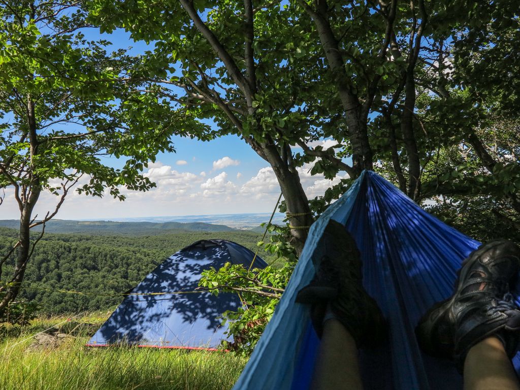 La șase dimineața, am deschis ”ușa” cortului, iar imaginea care ne-a umplut privirea a fost peste poate, linia orizontului fugind hăt-departe, lăsând lumea la vedere. Și imaginea asta a frumosului, a verdelui pădurii, plus liniștea din jur, a fost ca un cântec de leagăn. Am adormit ușor, și am dormit un somn cu zâmbet până aproape de amiază.