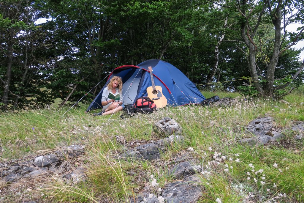 Ne-am întors pe insula de deasupra stâncilor și am agățat hamacul de doi copaci. În hamac, parcă și cititul e altfel. Și am scos și chitara din husa ei, încă o dată, ca un fel de ”rămas bun” adresat naturii, în acel loc de pe Platoul Ponor care a găzduit prima tabără SPS, și care a deschis calea viitoarelor tabere.