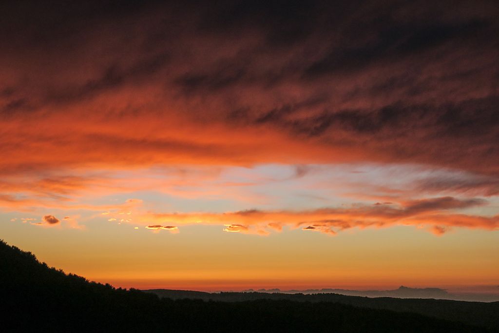 Nu știu dacă datorită muzicii cântate pe stânci, în mijlocul naturii, dar soarele, la amurg, a îmbrăcat cerul în niște culori incredibile, norii părând că ard, mici bărci plutind pe marea de deasupra lumii. Și magia luminii a cuprins totul în jur.