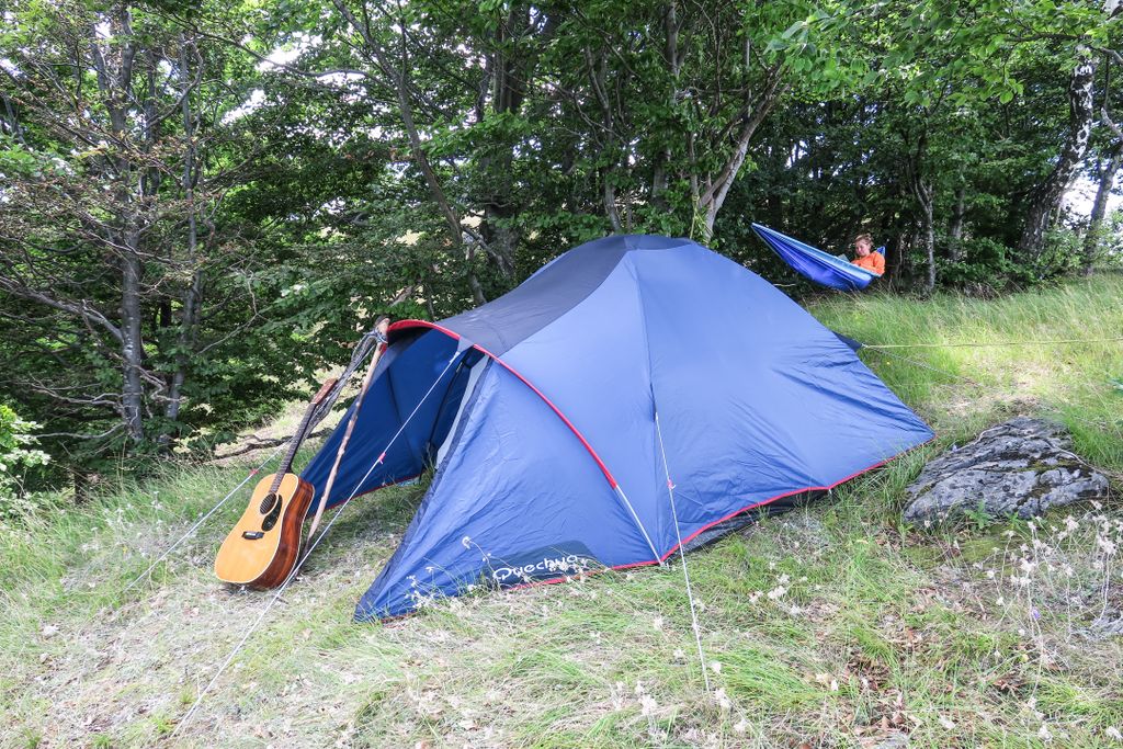 Deci, prima tabără SPS, pentru că se poate și altfel. Am lăsat mașina la marginea drumului, sub un copac, apoi, încărcați până la refuz, am luat-o către grupul de stânci pe care-l descoperisem acum câtiva ani, un loc retras, departe de agitația civilizației umane, un loc în care te simți, și la propriu și la figurat, la înălțime. La propriu, pentru că stânca asta e ca un fel de peninsulă, înconjurată din trei părți nu de apă, ci de cei 15 – 20 de metri care despart micul platou verde de deasupra stâncii de pădurea aflată dedesubt. Un loc de unde poți să vezi până hăt-departe. La figurat, pentru că priveliștea asta deosebită pe care o ai odată ajuns acolo, te înalță, și te înalță, și oricât te-ar înălța, vrei tot mai mult.