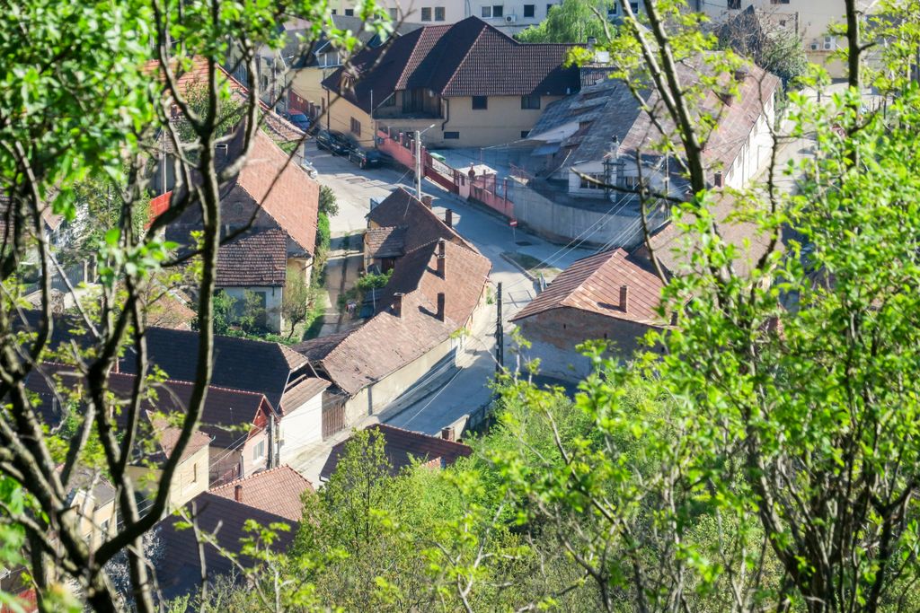 Acuma, chiar dacă eram acolo de dragul legendei, deci să caut niscaiva indicii care să mă ducă cu gândul, cât de cât, la firul poveștii, m-am trezit umblând de unul singur pe străzile vechi, uitând de legendă și descoperind crâmpeie de poveste în șerpuirea străzilor către și de-a lungul Măgurii, ori în porțile vechi ale unor case. Ba chiar și în acoperișurile caselor aflate, la un moment dat, la picioarele mele, acolo de unde, de la marginea zidului imens de beton, care pare mai mult un zid de cetate din ceva vremuri apuse, atunci când balaurul cu șapte capete din legendă își făcea simțită prezența, orașul ți se dezvăluie și altfel.