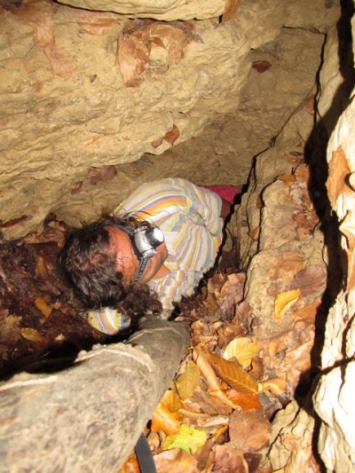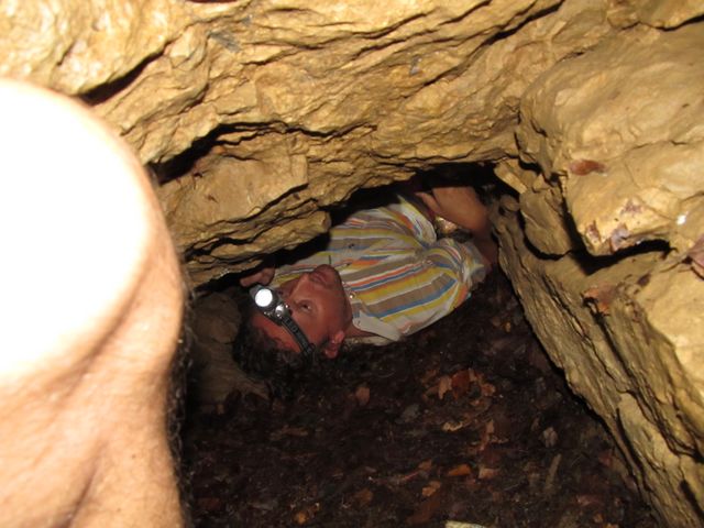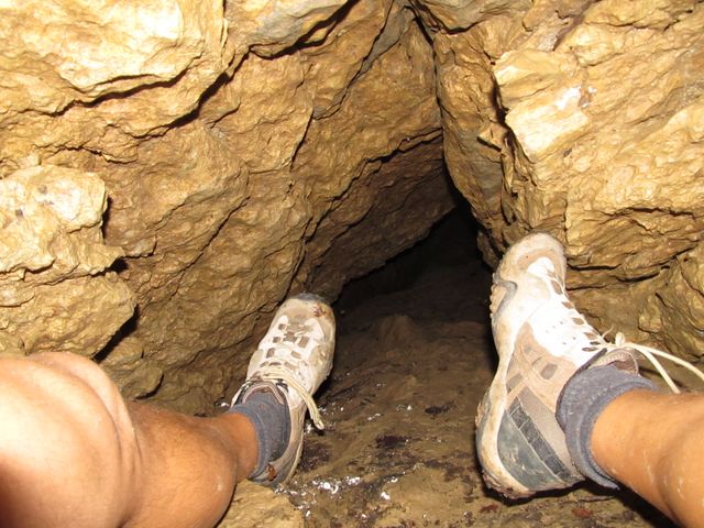 Cred că nu se compară cu nimic senzaţia asta: pur şi simplu, parcă eşti învelit cu mii de tone de stâncă, iar liniştea e atât de grea, încât vine spre tine ca o supragreutate. Înaintăm cu greu prin tunelul strâmt, practic e o mişcare de târâş pe spate, ajutându-te doar de vârfurile degetelor şi de călcâi, cu care te tragi tot mai spre înainte, în necunoscut. Ciudat, chiar şi într-un loc de ăsta ascuns de lumea exterioară, există forme de viaţă: descoperim o grămadă de melci mari, fără cochilie, o specie ciudată de fluturi şi mulţi mulţi ţânţari mari agresivi.