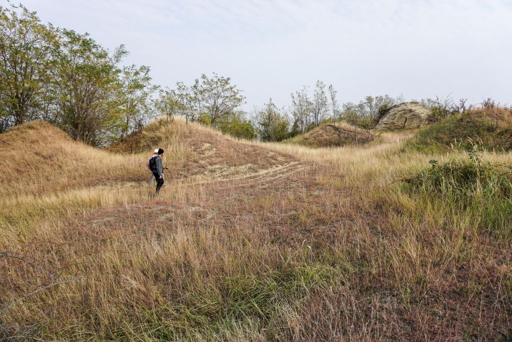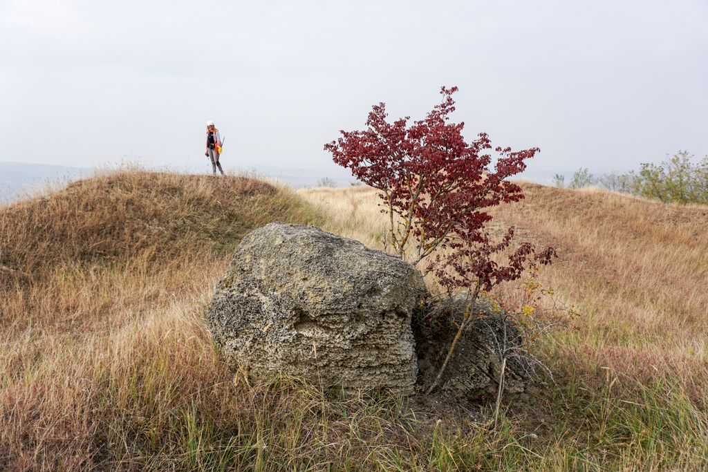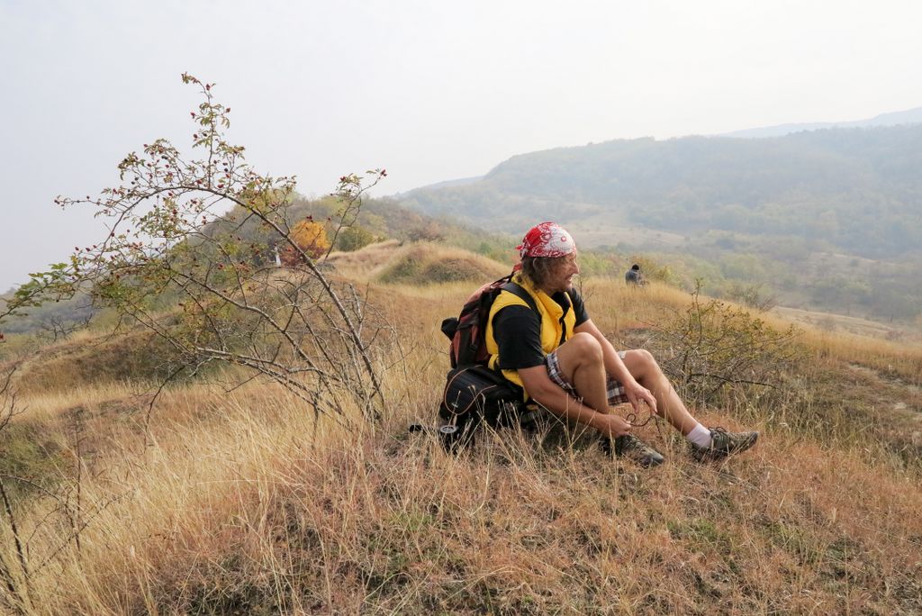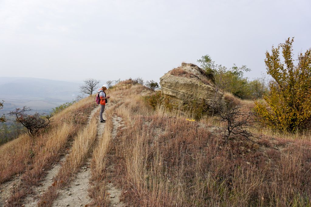 Acum, cocoțați pe cuirasat, pietrocul părea mai mult un loc de meditație, așa că am rămas o vreme acolo. Noi, băieții. Gina își făcea treabă pe lângă o vizuină de vulpe pe care a găsit-o acolo, lângă cuirasat, așteptând să apară vulpea. Normal, vulpea n-a apărut, așa că am coborât de pe cuirasat și am plecat în drumul nostru. Un drum care să ne ducă peste Măgură, la Șimleu. Ori la Cehei. Că, după prima tentativă de a ajunge la Giurtelec, dar am ajuns la Cehei, toate cărările de pe Măgură par să ducă acolo, la Cehei. Oricum, pentru că așa ne-am pus în plan, am luat-o pe cărare în sus, prin iarba galbenă înaltă, către pădure. Unde o să ajungem? Vorba lui Ovidiu (și care a rămas ca un fel de laitmotiv tot drumul): videa-om noi.