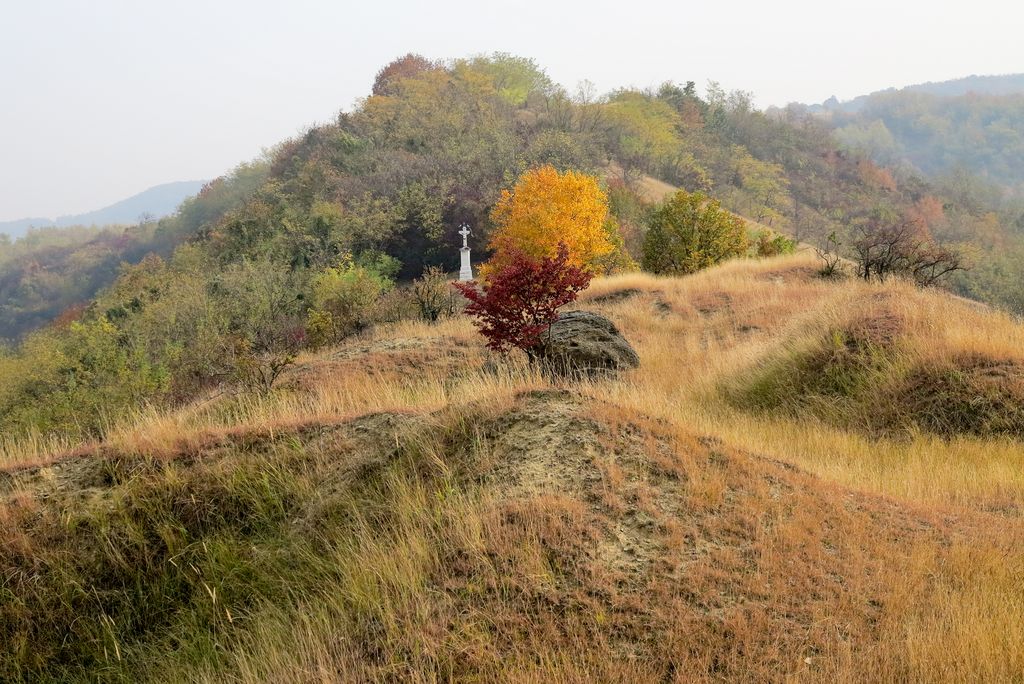 ”Api, io mă duc cu oamenii iștia până la cruce, pă deal. Ș-api mă-ntorc, că n-oi sta mult. Numa’ să văd că merg pă unde trebe, că cine știe ce-or face”, i-a spus bărbatul nevestei, apoi a venit cu noi. E drept, ne ziceam unul altuia că de aici ne descurcăm, că am înțeles pe unde trebuie să mergem. Ne-am dat seama că nu-i așa la prima intersecție de cărări, acolo unde noi am fi luat-o, fără să stăm pe gânduri, la dreapta, că pe acolo părea că urcă către culme. Evident, drumul cel bun era la stânga, și se numește, ori așa îi zic localnicii, drumul crucii. Pentru că, logic, duce către o cruce care, zice omul, a fost ridicată în 1800 și ceva. De către cine nu știa, dar Ovidiu a aflat ulterior cum că acea cruce a fost pusă de părintele Taloș, persoana influentă și participant la Marea Unire. Oricum, de îngrijit o îngrijește nea’ Ugorcsag, cel care ne însoțea pe cărare în sus, și care a așezat acolo o masă și o bancă pentru oricine o să ajungă acolo, pe Dealul Crucii.