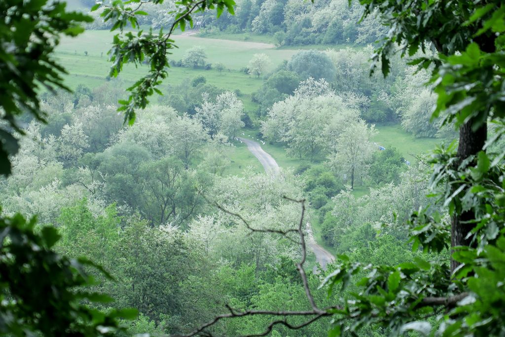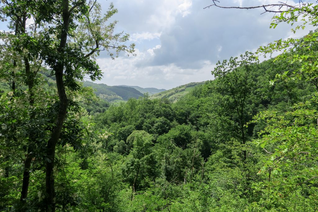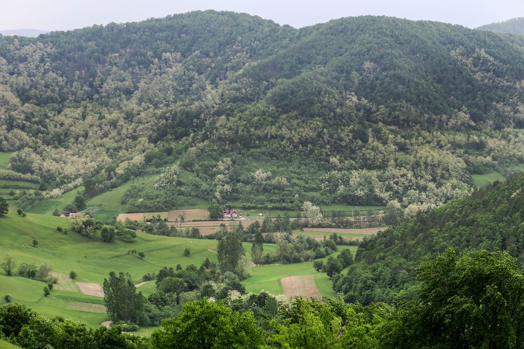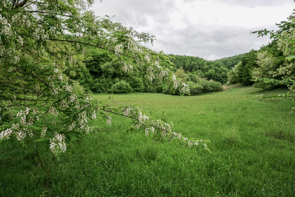 Am ieșit din pădure, iar peisajul a fost pe măsura nebuniei salcâmilor de la poalele dealului.
