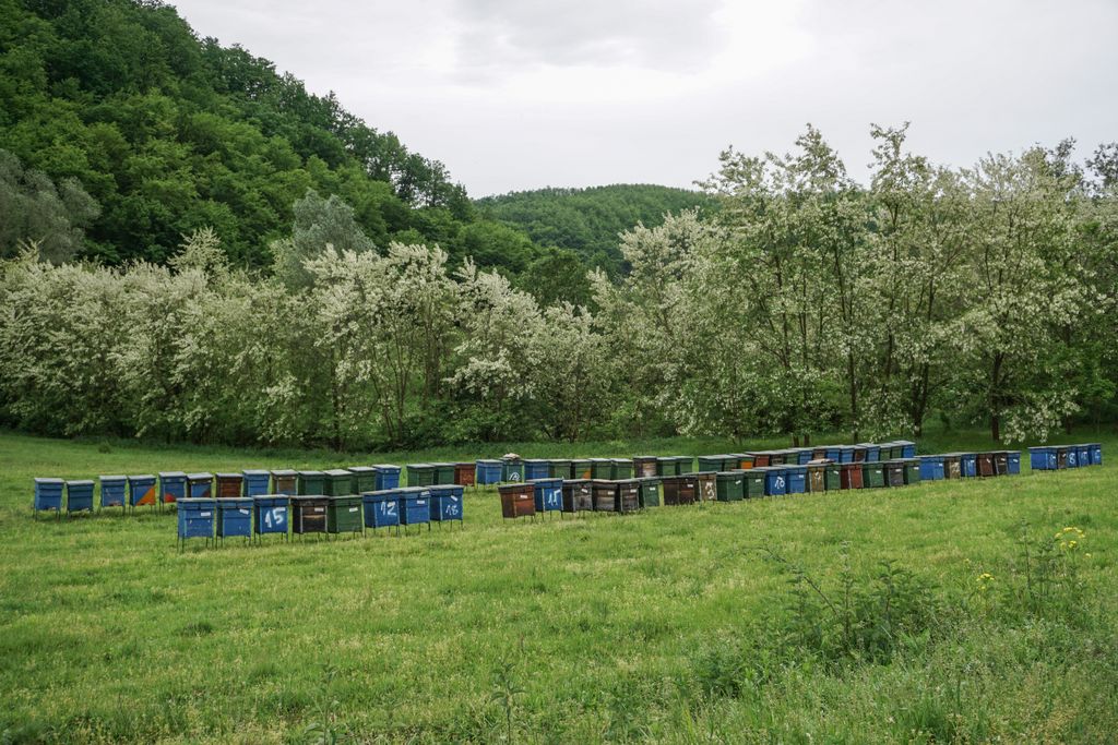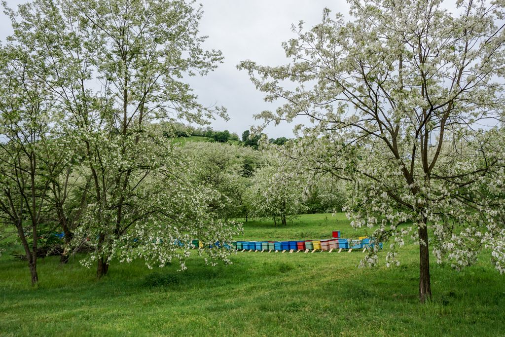 Fără tragere de inimă am luat-o pe drumul de întoarcere. Am coborât panta abruptă pe care o urcasem în urmă cu vreo 5 ore, și am ajuns la mașină. Am urcat și am pornit încet către casă. Apoi, pentru că prea m-am lăsat moale în scaun, stupii de lângă drum m-au ”chemat” să-i fotografiez. Mi-a trecut moleșeala pe loc, atunci când o albină s-a încurcat în părul meu (care oricum era deja încâlcit și cu tot felul de resturi de crengi, țepi și frunze la grămadă), bâzâindu-mi aproape, foarte aproape de ureche. Să vezi tu spectacol de comedie, un om fugind în jurul mașinii, dându-și haotic cu mâinile în păr. O tură de mașină. Apoi încă una, cu mâinile pe post de elice. Până când m-a pufnit râsul și mi-am dat seama de caraghiosul situației. M-am oprit din alergat în jurul mașinii, și m-am așezat liniștit pe scaun. Albina, care până atunci bâzâia ca nebuna, a mai scos un bâz domolit și a ieșit din părul în care se încurcase. Și dusă a fost. La fel și eu. Am lăsat locurile acelea atât de pitorești în urma mea, însoțit de parfumul nebun al salcâmilor înfloriți. Un parfum care m-a însoțit până acasă.