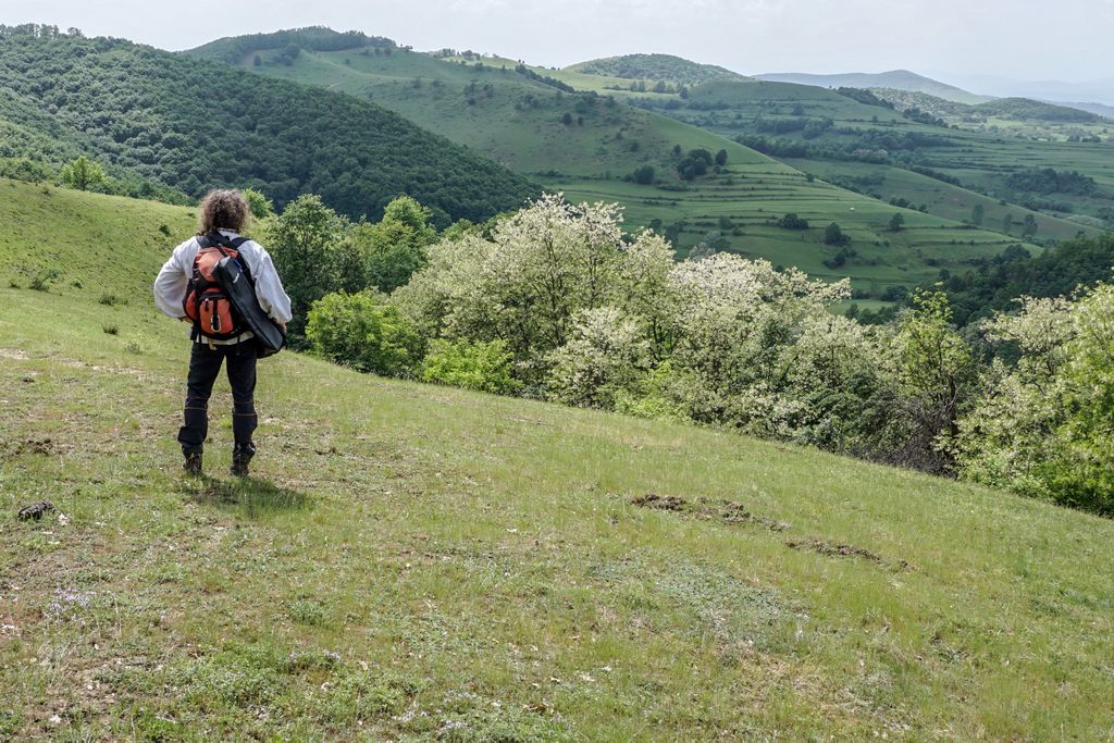 M-a văzut cu mult timp înainte să-mi dau seama că e în spatele meu și mă privește lung. Lucru firesc, de altfel, el, om al locurilor, care a trăit toată viața acolo și cunoștea fiecare palmă de pământ, n-a mai întâlnit niciodată vreun străin prin părțile ălea. Doar acum ceva vreme, cu mulți, mulți ani în urmă, pe acolo mai treceau, câteodată, militari: ”pă acolo era comandă din aia, de la militari. Ceie, militarii, când vineau, vineau d-aci și suieu acolo, că-i cel mai înalt deal”. Observatorul militar, fiindcă despre asta e vorba, nu mai există. Și nici nu mai trece careva pe acolo, așa că orice ”intrus” e repede observat de cei care sînt cu vacile la pășune ori iau pădurile la pas după hribi, ca și Pintea, omul pe care l-am întâlnit acolo, sus, pe dealurile de lângă satul Trestia. Și nici nu știu ce l-a mirat mai tare, faptul că m-a văzut acolo, unde doar cei ai satului mai umblă, ori cămașa țărănească pe care o purtam, cămașă care era în contrast evident cu rucsacul, geanta cu aparatele foto ori trepiedul pe care le purtam în spate? I-am citit căutătura curioasă din privire, așa că am dat-o pe limba lui:
