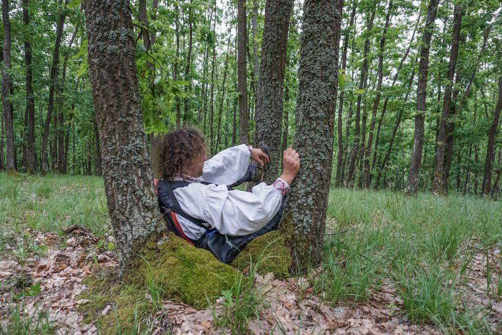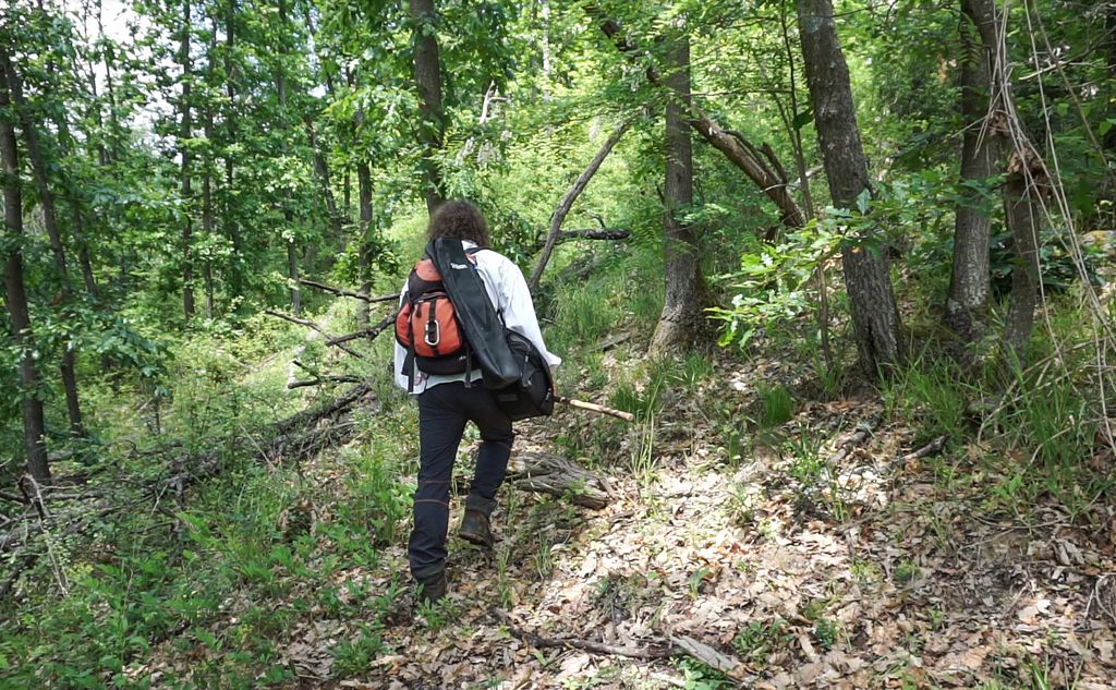 Am intrat în pădure, urcând panta abruptă, prin iarba udă de la ploaia din urmă cu o zi, iar aburii ce se ridicau din solul umed dădeau un efect de saună puternic. În câteva minute am fost leoarcă, cu părul încâlcit (numai eu știu cum am ”arat” tufele de spini și mărăcinișul cu părul din cap), trăgând puternic în piept aerul proaspăt, curat al pădurii, cu ochii larg deschiși. Apoi, după un timp, am ajuns la liziera pădurii, acolo unde voiam să ajung, unde văzusem pe o hartă ceva ”linie” galbenă, semn că poate fi ceva acolo. Ce? Nu știu. Și nici nu era important, era de ajuns ca pretext pentru a merge acolo. Deși, să fiu sincer, niciodată nu am avut un scop anume, bucuria de a mă simți liber e tot ce contează.