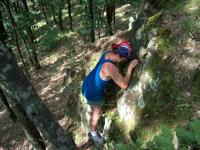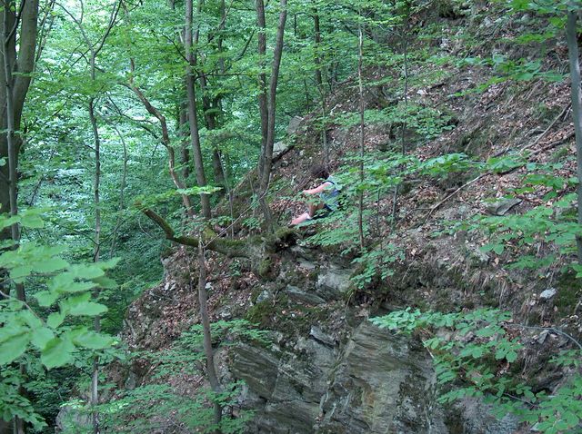 Iesim din panta la vreo 50 de metri de unde am inceput urcusul. Doi tineri in campurile vizuale carora explodam din tufisuri, se uita la noi ca la nebuni. “Nebunii” nu-i baga in seama. Ne recuperam bicicletele, sugem la sticla de Pepsi ca aia mici, agatati de un san, dam jos praful de pe noi si incalecam, din nou, pe biciclete. Pedalam, mult timp, fara sa ne adresam nici o vorba. Nici nu mai ramane nimic de zis, dupa o experienta ca asta. Ca intelesi, trecem in tromba pe langa palcul de tursti, care, acum, mai mult ca niciodata, ni se pare ca murdaresc si mai tare locurile cu manelele si zgomotele lor. Urmeaza 30 de kilometri de pedalat spre casa. E ca si legea legionarilor: “Mergi ori crapa”. Esti obligat sa pui tot timpul, cate o pedala in fata. Urcusul si prapastia ne-a lasat fara vlaga. Tinem tare, cu privirile agatate spre orizont, ghidonul si-i dam tot inainte. Jibou. Zalau. Trei pe doua biciclete. Cu Murphy si cu vantul sau, care totdeauna bate impotriva ta. Dar zarurile sunt aruncate. Saptamana viitoare, mergem in cautarea “padurencelor” Clitului. Si, evident, sa mai dam gata ceva stanci.